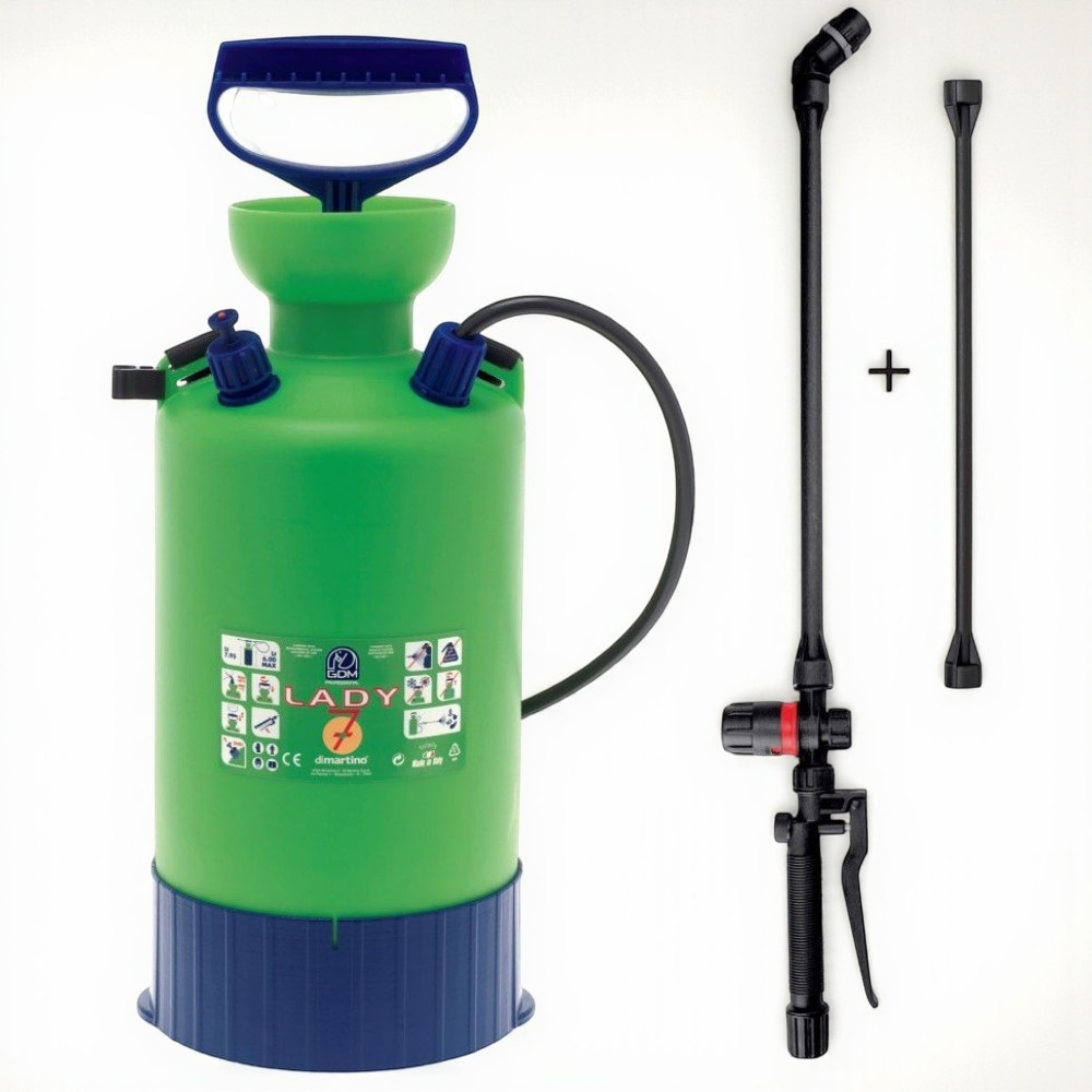 A Dimartino® GDM LADY 7 praktikus kialakításának köszönhetően ideális választás kisebb kertekbe, üvegházakba vagy otthoni növényápoláshoz. A teleszkópos, 40–65 cm-es szórókar segítségével a nehezebben elérhető növényeket is könnyedén elérheted, a nyomásszabályozó és a nyomásjelzős biztonsági szelep pedig garantálja a precíz és biztonságos permetezést.