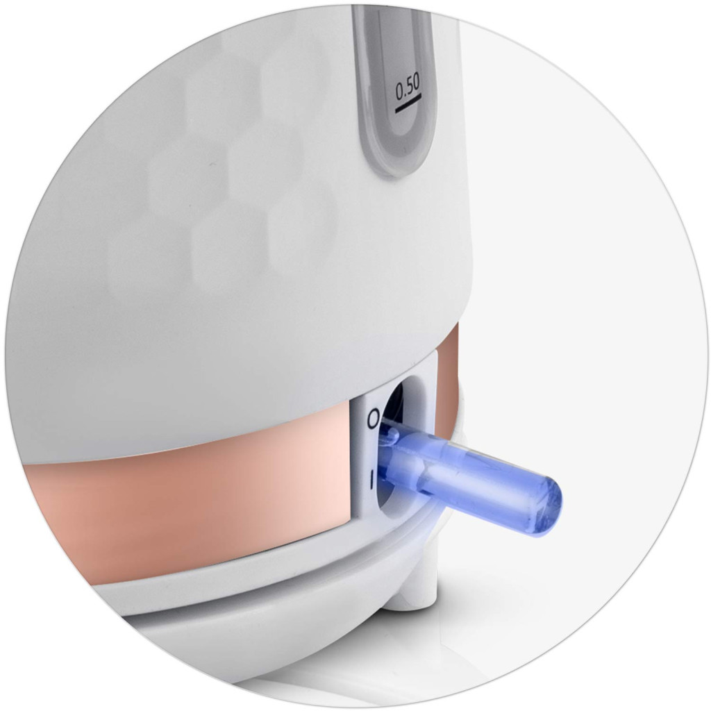 Ez a vízforraló gyors felfűtést kínál, így reggeli teád vagy kávéd perceken belül elkészül. A szárazforralás elleni védelem biztonságot ad, a vízszintkijelző miatt mindig pontosan tudod, mennyi vizet melegítesz. A beépített kábeltartóval a pult rendezett marad, az alulról megvilágított kapcsoló pedig elegáns fényjelzést nyújt, amikor a készülék működésben van. Jobb- és balkezesek egyaránt könnyedén visszahelyezhetik a kannát a forgó talpra.
