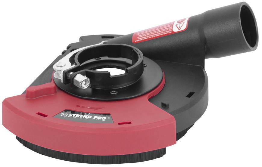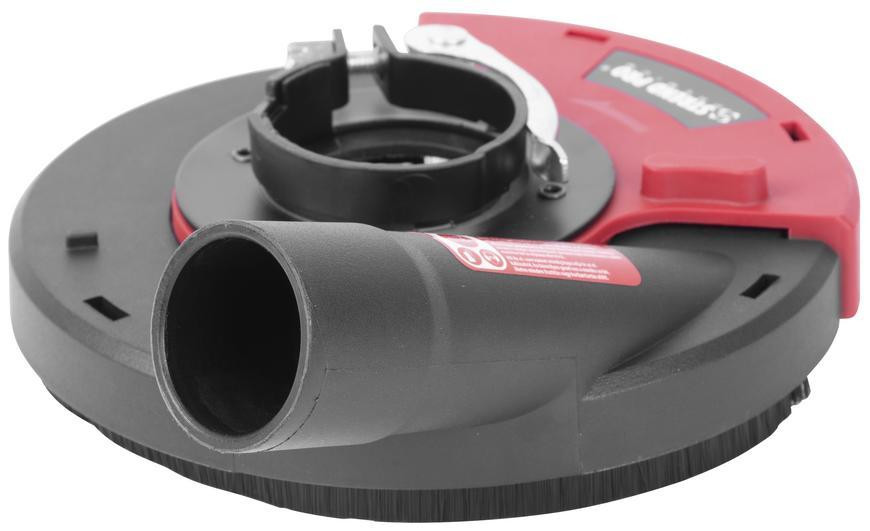 A Burkolat Strend Pro DP128 elszívó fedél 115 / 125 mm tárcsaátmérőjű sarokcsiszolókhoz készült, hogy munka közben hatékonyan elszívja a port és megóvja a légutakat. A masszív, fekete-piros szerkezet bírja a nagy igénybevételt, a körbefutó kefe pedig szorosan zár a munkadarabon, így minimálisra csökkenti a porszóródást. A fedélre egyszerűen rögzíthető porszívócső, így tiszta, átlátható munkakörnyezetet biztosít beton, csemperagasztó vagy vakolat csiszolásakor.