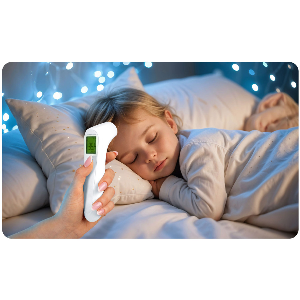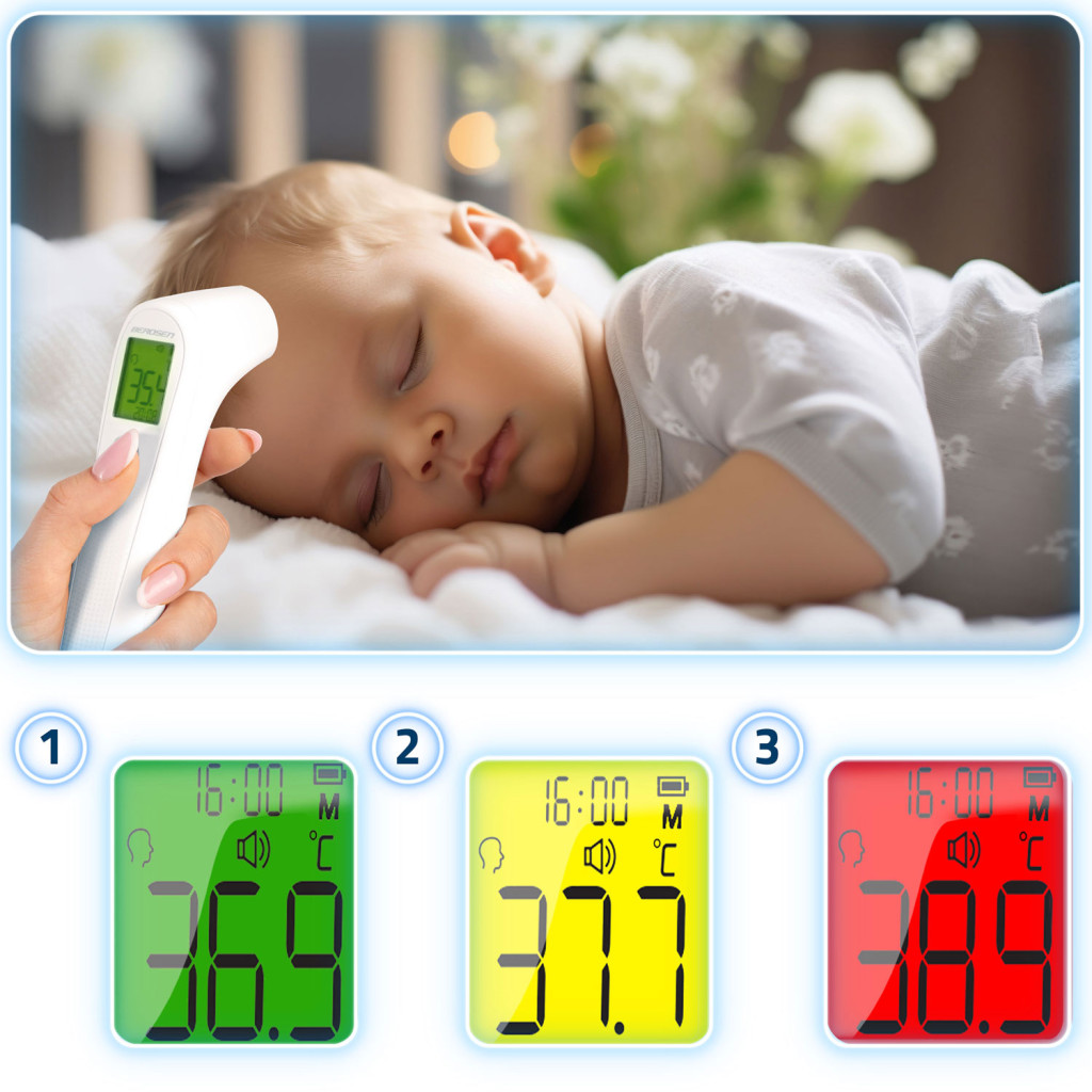 Mert gyors, halk és gyengéd: egyetlen gombnyomás után azonnal megkapod az eredményt, síró gyermek ébresztgetése nélkül. A színváltós kijelző már távolról is mutatja, hogy normál-e a testhő, emelkedett-e, vagy lázról beszélünk, így nem kell számok böngészésével bajlódnod. A harminc memóriapozíció révén könnyedén követheted a láz alakulását, az automatikus kikapcsolás pedig védi az elemeket, hogy mindig készen álljon, amikor szükséged van rá.