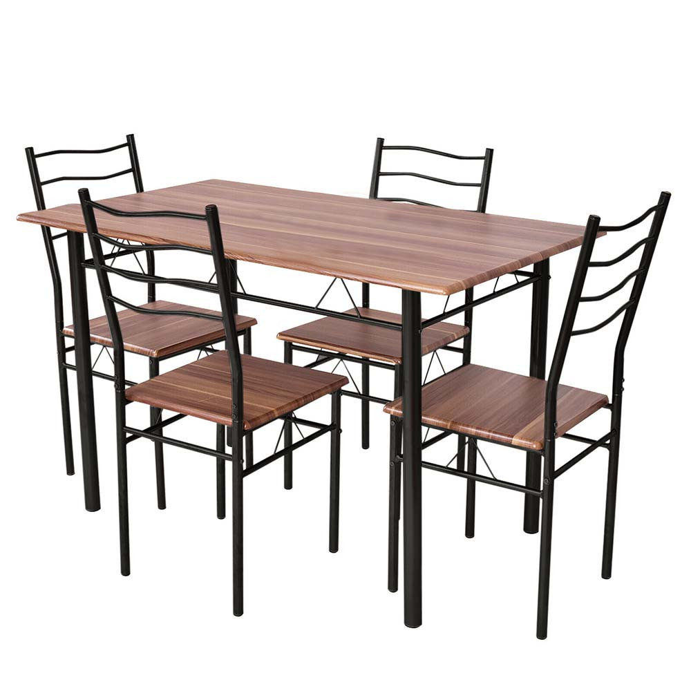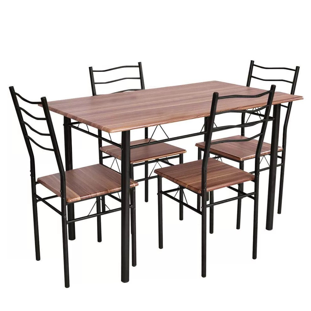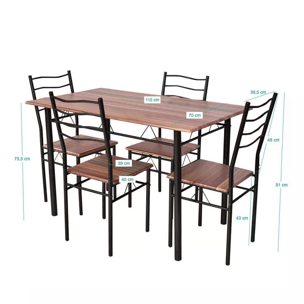 Tedd stílusossá és praktikussá étkeződet a fémvázas étkezőasztal 4 székkel garnitúrával! A modern ipari dizájn és a természetes fa kombinációja tökéletes harmóniát teremt. A masszív fekete fémváz és a barna fa asztallap időtálló stabilitást biztosít, miközben a négy ergonomikus szék kényelmes ülést nyújt. Tökéletes választás családi étkezésekhez, baráti összejövetelekhez, de akár kávézókba és éttermekbe is ideális.