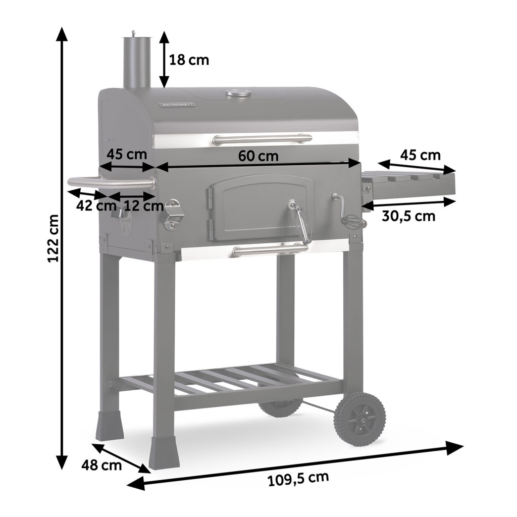 Dobd fel a kertipartik hangulatát a Berdsen BD-891 faszenes grillel! A masszív, porfestett acéltest tágas sütőfelületet rejt, ahol egyszerre készülhetnek a szaftos húsok, roppanós zöldségek és fűszeres kolbászok. A beépített kémény és a szabályozható levegőnyílások gondoskodnak a tökéletes huzatról, míg a tekerőkaros parázstál segítségével pillanatok alatt variálhatod a hőfokot. A fedélbe épített hőmérő folyamatosan tájékoztat, a kerekek és a lehajtható oldalpult pedig a mobilitást és a helytakarékos tárolást szolgálják.