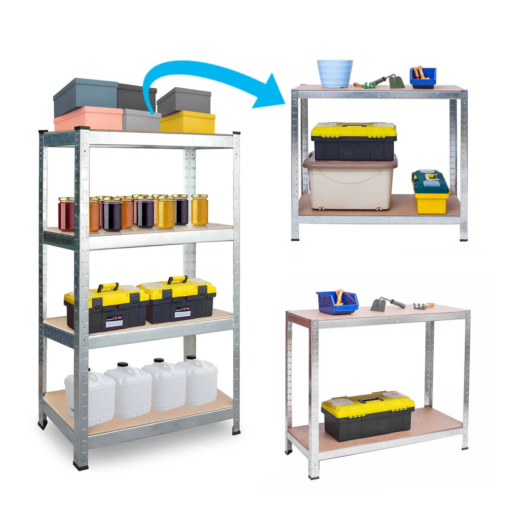 Robusztus, galvánbevonatú acélprofilokból és strapabíró MDF polcokból felépülő, két darabos Humberg HR-812 fém polcrendszerünk 180 x 90 x 40 cm méretével minimális alapterületen maximális tárolókapacitást kínál. Az öt, tetszőlegesen állítható magasságú polc egyenként 175 kg teherbírással bír, így kartonok, barkácsgépek és autóalkatrészek is nyugodtan elférnek rajta. Igény esetén a magas állvány kettéosztható két alacsonyabb egységre, akár munkaasztalnak is. Lekerekített élek és padlókímélő műanyag lábsapkák gondoskodnak a biztonságról.