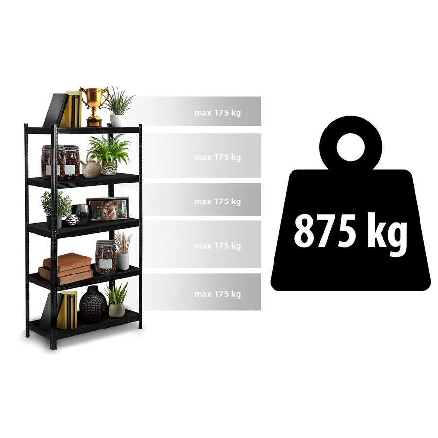 • Teherbírás: 175 kg/polc, 875 kg összesen