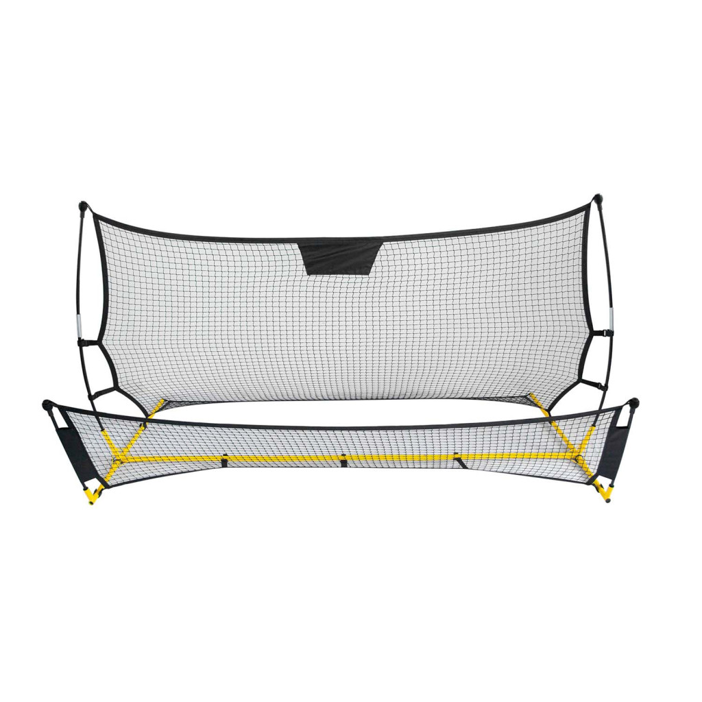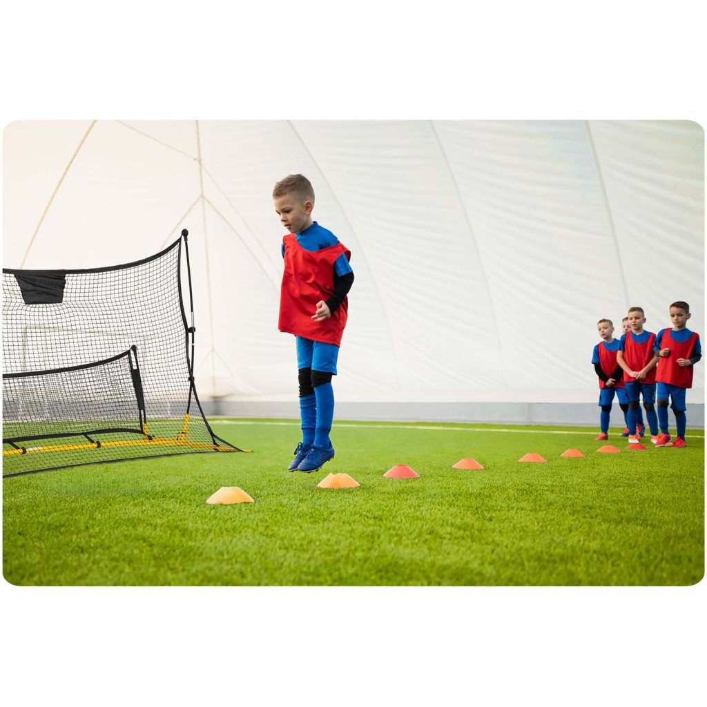 Ez a kétoldalas rebounder ideális választás mind kezdő, mind haladó futballistáknak, akik játék közben szeretnék finomítani passzaik pontosságát és reakcióidejüket. A ferde alsó háló laposan pattan vissza, így precízen gyakorolhatod az alacsony passzokat, míg a felső szekció magas ívben lövi vissza a labdát, ami tökéletes fejesekhez vagy kapáslövésekhez. Szerszám nélkül, percek alatt felállítható, és a mellékelt földhorgonyok viharálló stabilitást adnak.