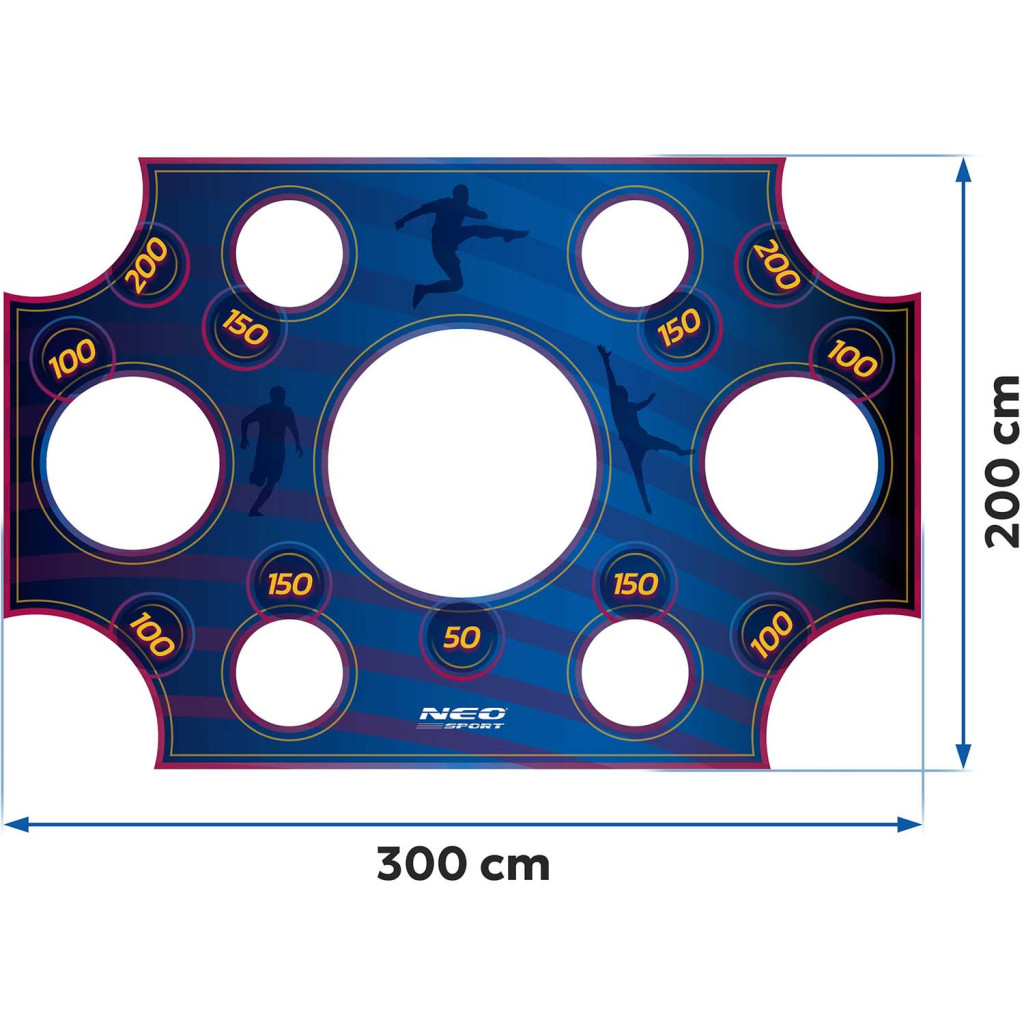 Fejleszd a lövéseid pontosságát a Neo-Sport 300 × 200 cm célponthálóval! A strapabíró, időjárás-álló ponyva kilenc különböző méretű, kör alakú nyílással rendelkezik, mindegyiket látványos pontszám jelzi, hogy a gyakorlás játékos kihívássá váljon. A mellékelt elasztikus rögzítőzsinórokkal pillanatok alatt felfüggesztheted bármely szabványos 3 × 2 m focikapura, feszesre húzva a ponyvát, így a labda csak a kialakított lyukakon juthat át. Gyerekeknek és felnőtteknek egyaránt tökéletes választás, legyen szó kerti mókáról vagy komoly edzésről.