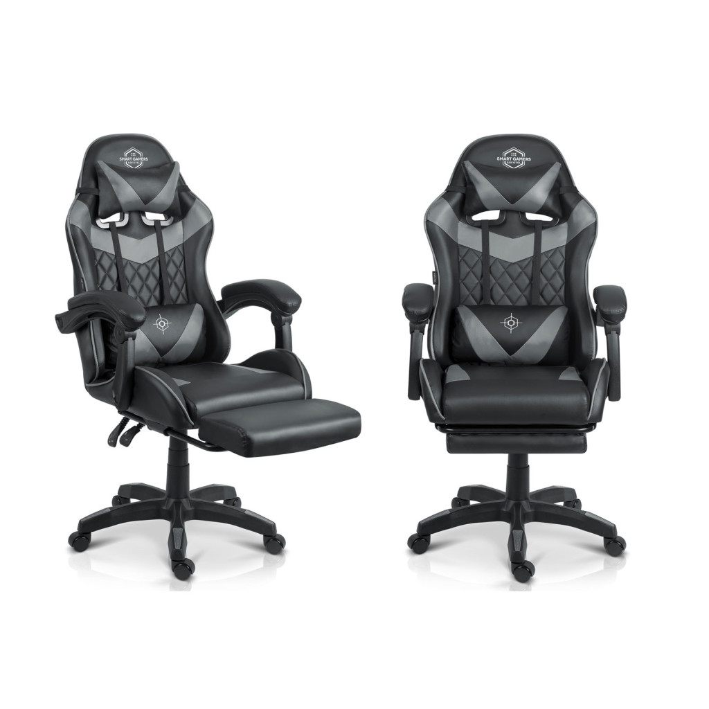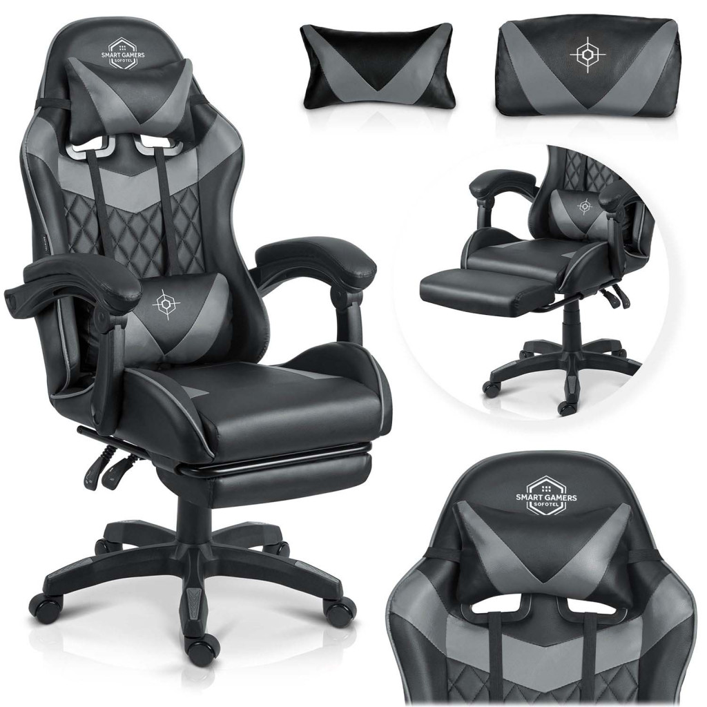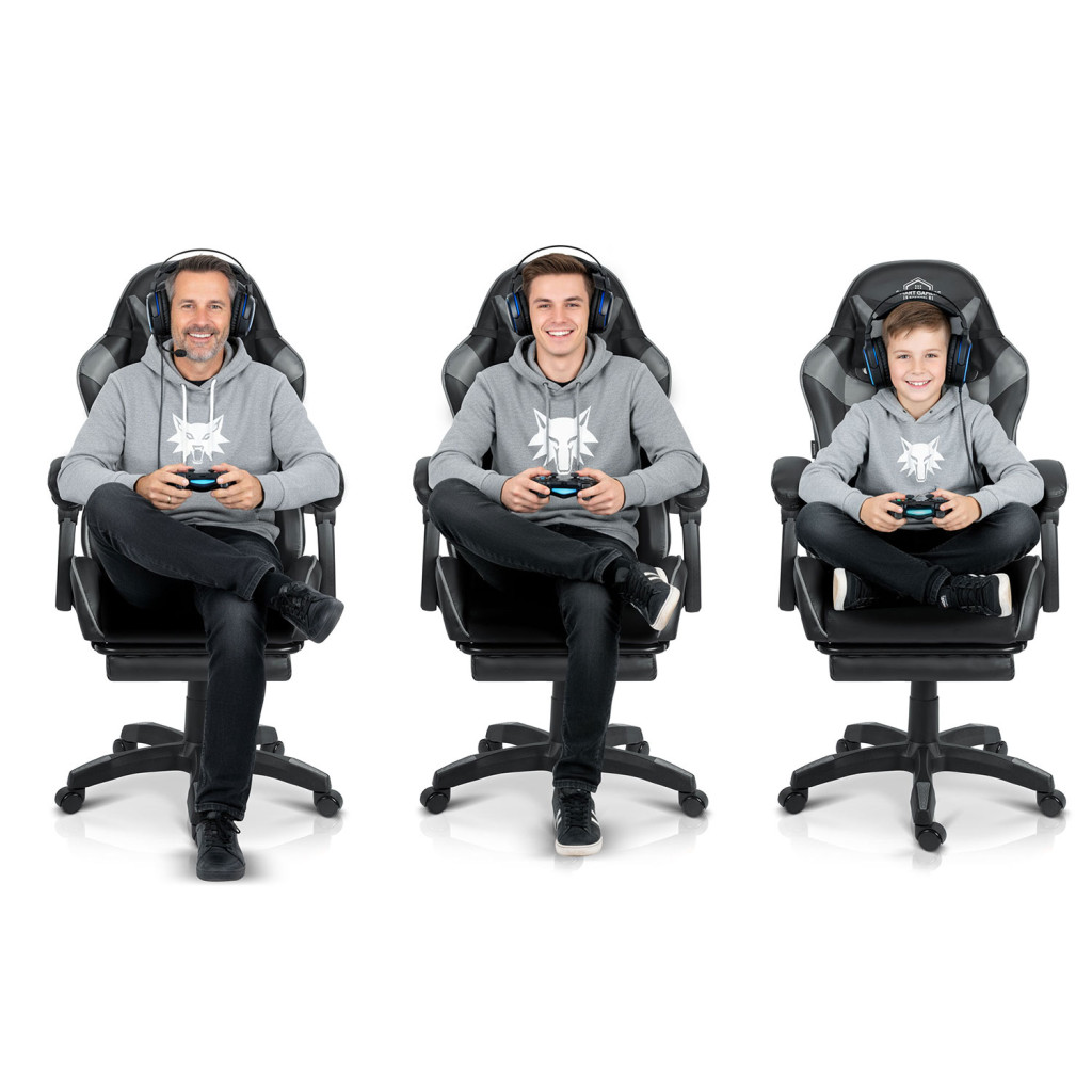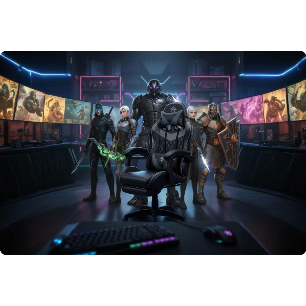 A Sofotel Draknor II gamer fotel fekete-szürke színeivel elegáns kiegészítője lesz játéksarkodnak vagy irodádnak. Kubelésen alapuló formája és 70 cm magas, gyémántmintás háttámlája stabilan támasztja a gerincet, míg a 36–46 cm között állítható ülésmagasság a SoftUp™ gázlifttel pillanatok alatt személyre szabható. A vastag, rugalmas habbal töltött ülőlap és a kihúzható lábtartó teljes testpihentetést kínál, a 360°-ban forduló, gumírozott görgők pedig csendben gördülnek, anélkül hogy karcolnák a padlót.