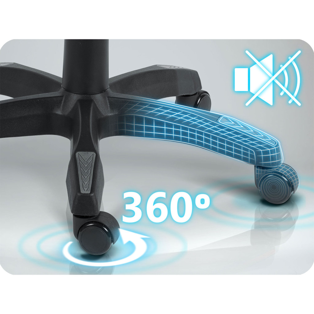 • Kerekek: 360°-ban forgó, nylon–kaucsuk, padlóbarát