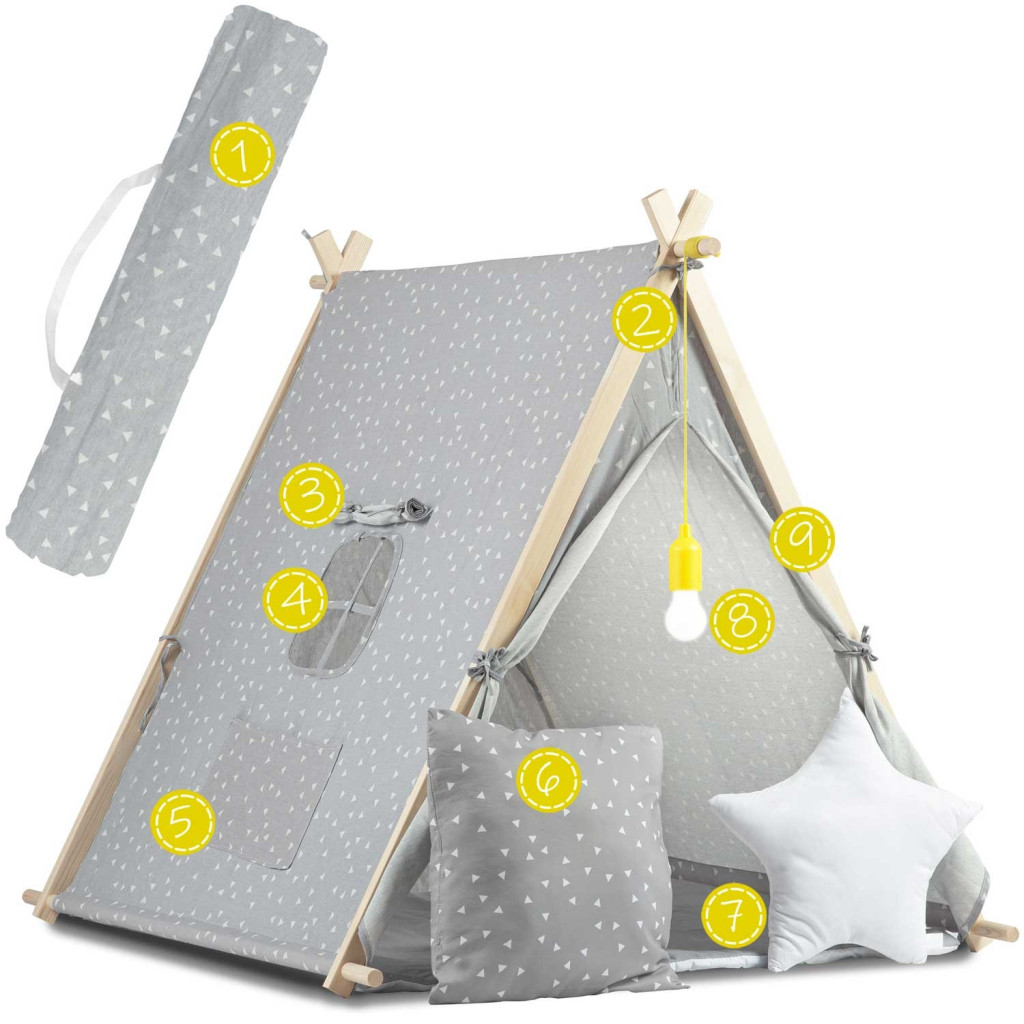 Építs saját indián kuckót a Nukido gyereksátor LED-lámpával – szürke kiadásban! A prémium pamutból varrt, légáteresztő sátor természetes topolafa váza stabilan tartja az A-alakot, így a lurkók biztonságban játszhatnak. A vastag, csúszásgátlós matrac puha pihenőhelyet kínál, míg a két dekoratív párna extra kényelmet és hangulatot teremt. A visszafogott szürke textil apró fehér mintái minden gyerekszobát feldobnak, a sátor felállítása pedig szó szerint néhány perc.