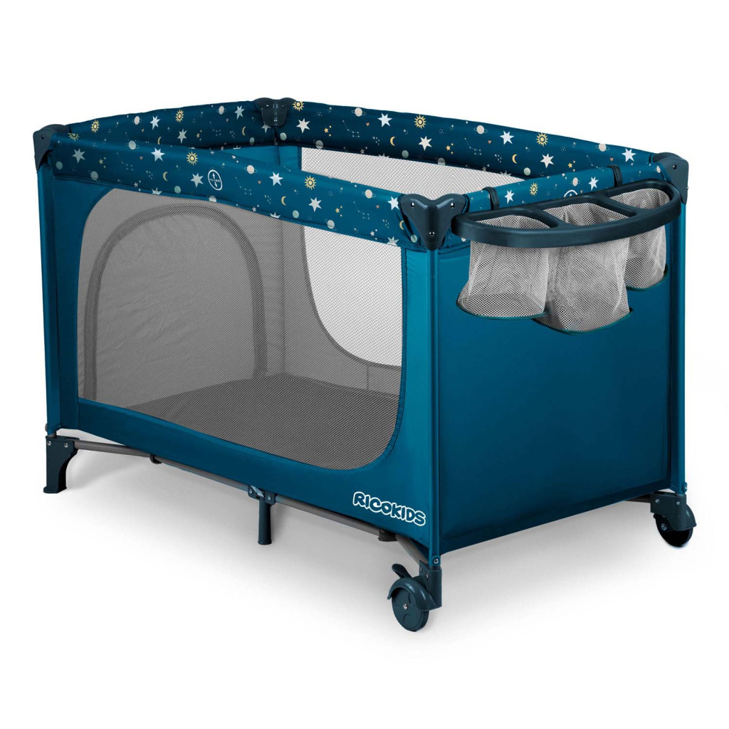 Legyen a pihentető alvás és a biztonságos játék bárhol egyszerű a Ricokids RK-240 utazóággyal! A 125 x 65 x 78 cm-es belső tér tágas helyet kínál, a masszív acél váz és a légáteresztő hálós oldalak pedig stabilitást és állandó rálátást nyújtanak. A csillagmintás, tengerészkék huzat barátságos, mesés hangulatot varázsol, míg a cipzáras oldalbejárat és a fékezhető kerekek rugalmas használatot tesznek lehetővé. Mindössze 8,7 kg, így könnyedén magaddal viheted nyaralásra, nagyszülőkhöz vagy akár a nappaliba.