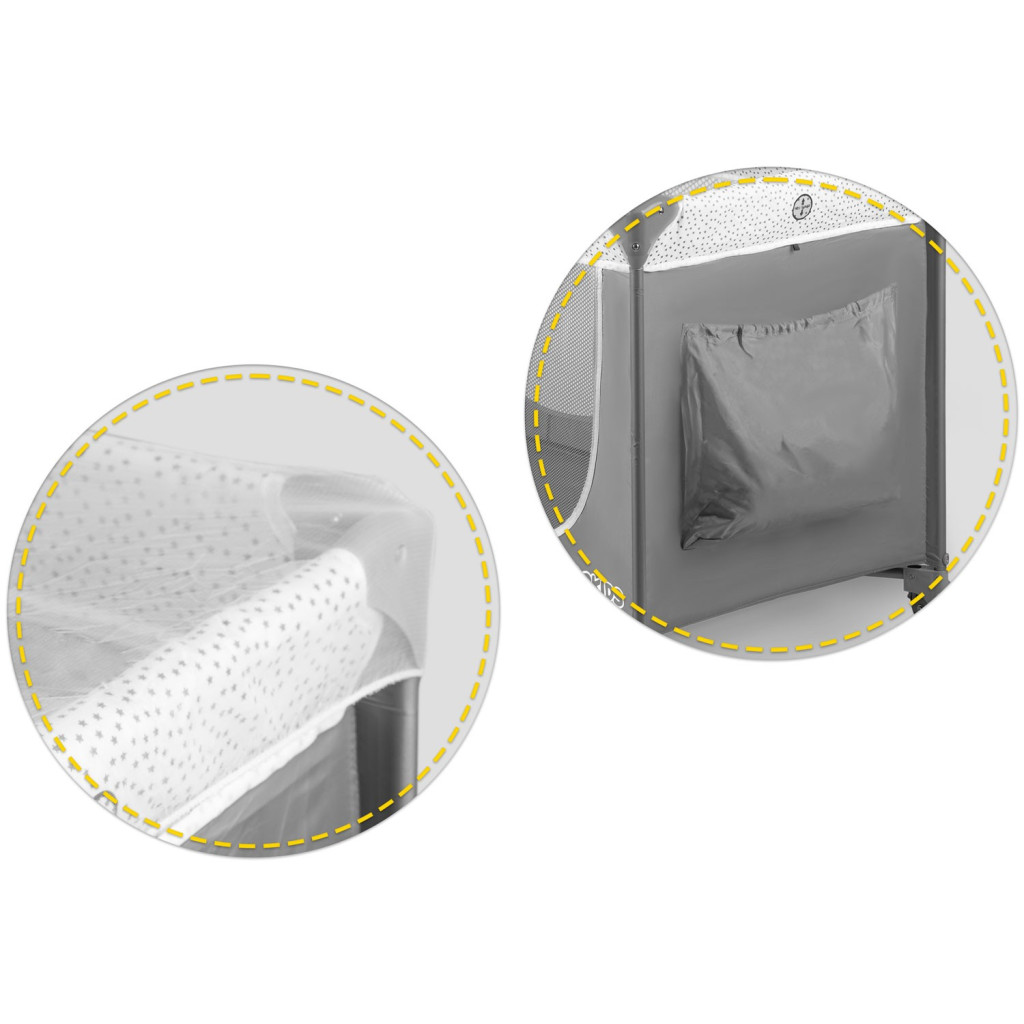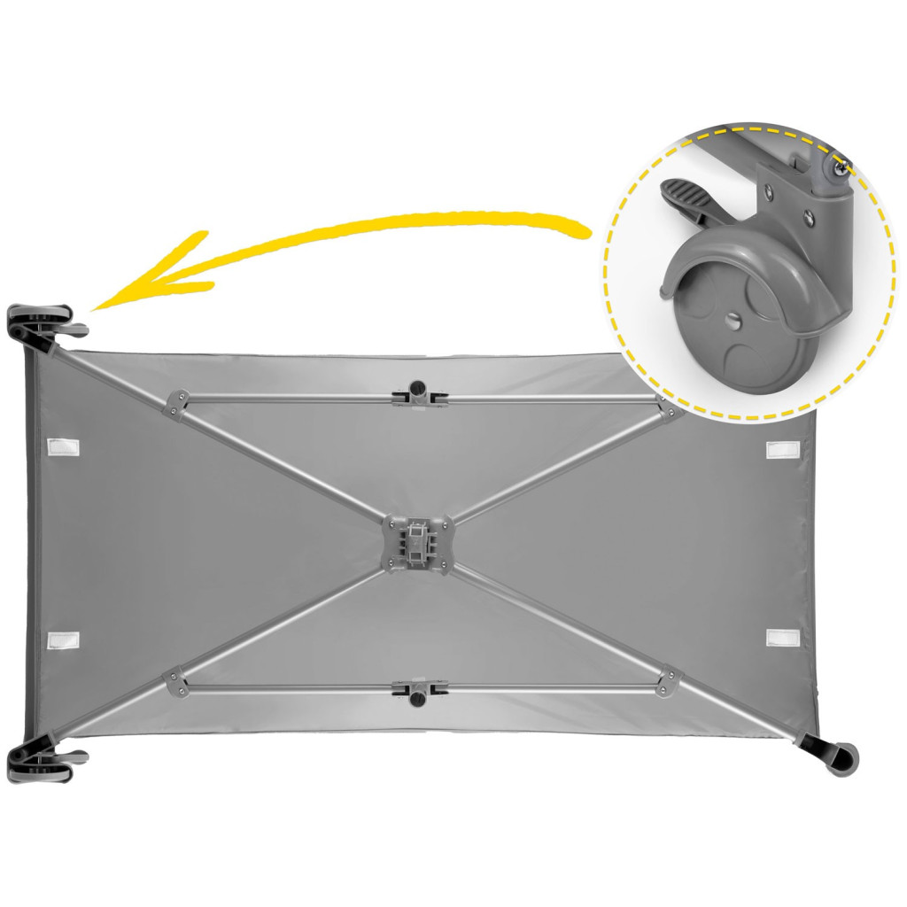 Fedezd fel a Ricokids RK-241 szürke utazóágyat, amely 125×65×78 cm-es belső térrel biztosít kényelmes és biztonságos pihenőhelyet a kicsinek, bármerre jártok. A mindössze 8,7 kg-os, masszív acélvázzal és erős poliészter szövettel készült ágy villámgyorsan össze- és széthajtható, így percek alatt felállíthatod a hotelben, a nagyszülőknél vagy otthon. A hálós oldalfalak kiváló szellőzést nyújtanak, egyben megkönnyítik a szemmel tartást, a fékezhető kerekek pedig segítik a könnyed mozgatást.