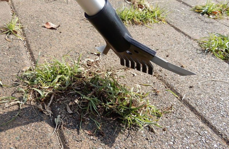 • Helyezd az éles pengét a fuga mellé, húzd végig a gyom tövénél
