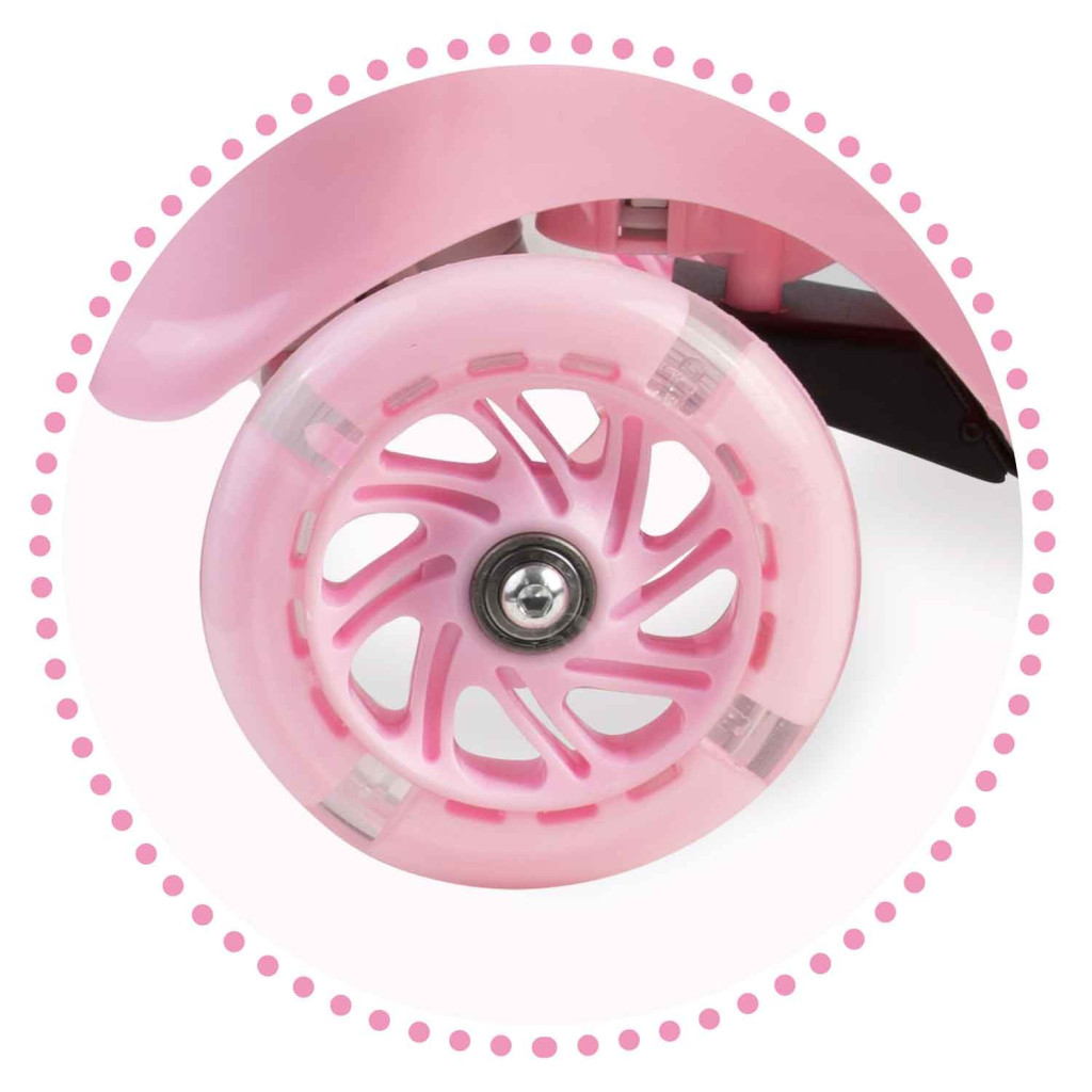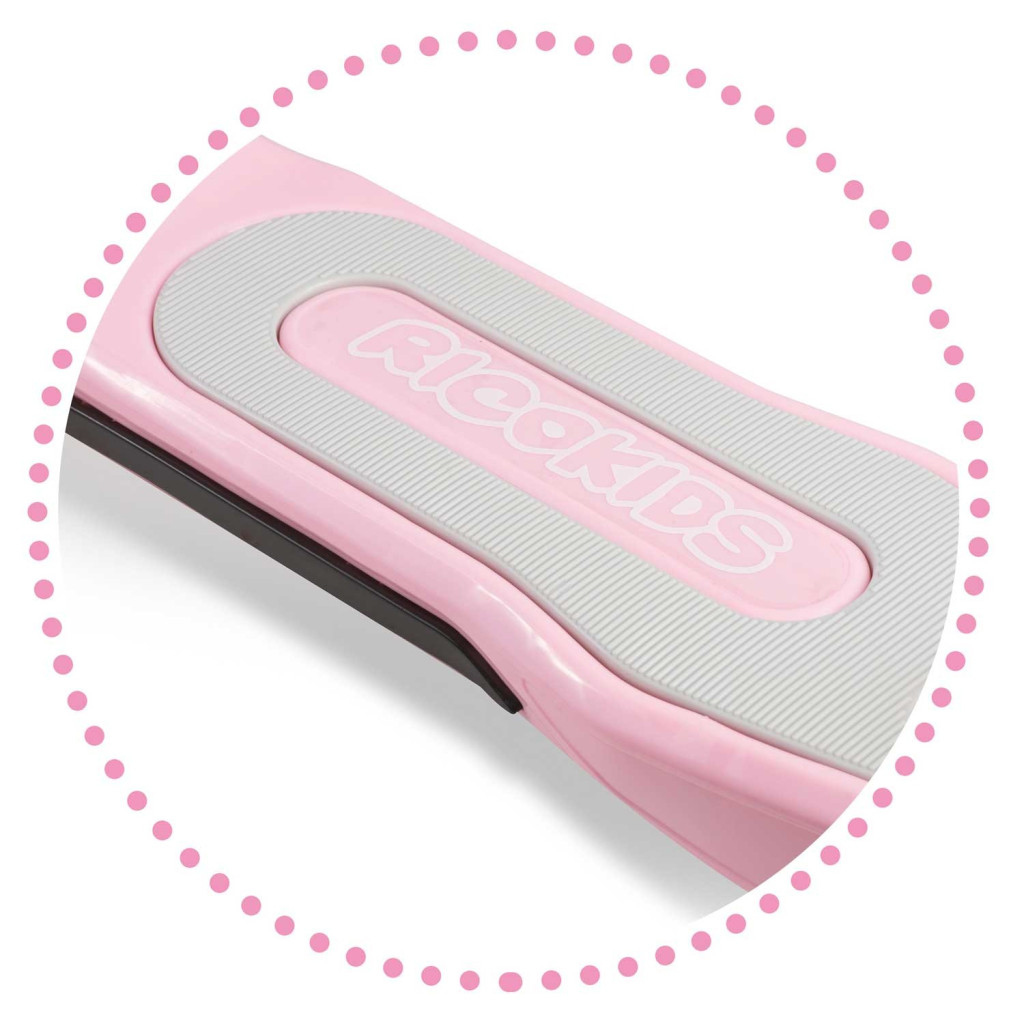 Élménydús szabadtéri kalandot varázsol a Ricokids Piko háromkerekű roller! A rózsaszín, csillogó LED-ekkel megvilágított kerekek, fedélzet és orrpanel már messziről felhívja magára a figyelmet, miközben az alumínium kormány három fokozatban állítható a 35 kg-ig terhelhető járgányhoz. A széles, csúszásgátló deck, a rázkódást nyelő gumimarkolatok és a strapabíró PU kerekek gördülékeny, stabil és biztonságos gurulást kínálnak a legkisebbeknek is.