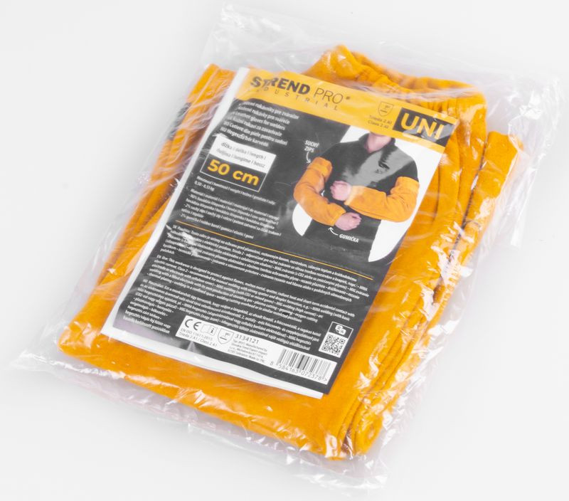Az 50 cm hosszú Strend Pro Industrial bőr hegesztő karvédő masszív, hasított marhabőr felületével megbízható pajzsot von a karodra. A vastag, hőálló réteg távol tartja a szikrákat, az olvadt fémcseppeket és a perzselő hősugarat, miközben a belső puha kidolgozás kényelmes viseletet ad egész műszakon át. A csuklónál rugalmas mandzsetta öleli körbe a kart, felül pedig tépőzáras pánt rögzíti, így mozgatás közben sem csúszik el. Egy pár mindössze 0,55 kg, ezért nem terheli feleslegesen a karodat, mégis teljes alkarhosszon fed.