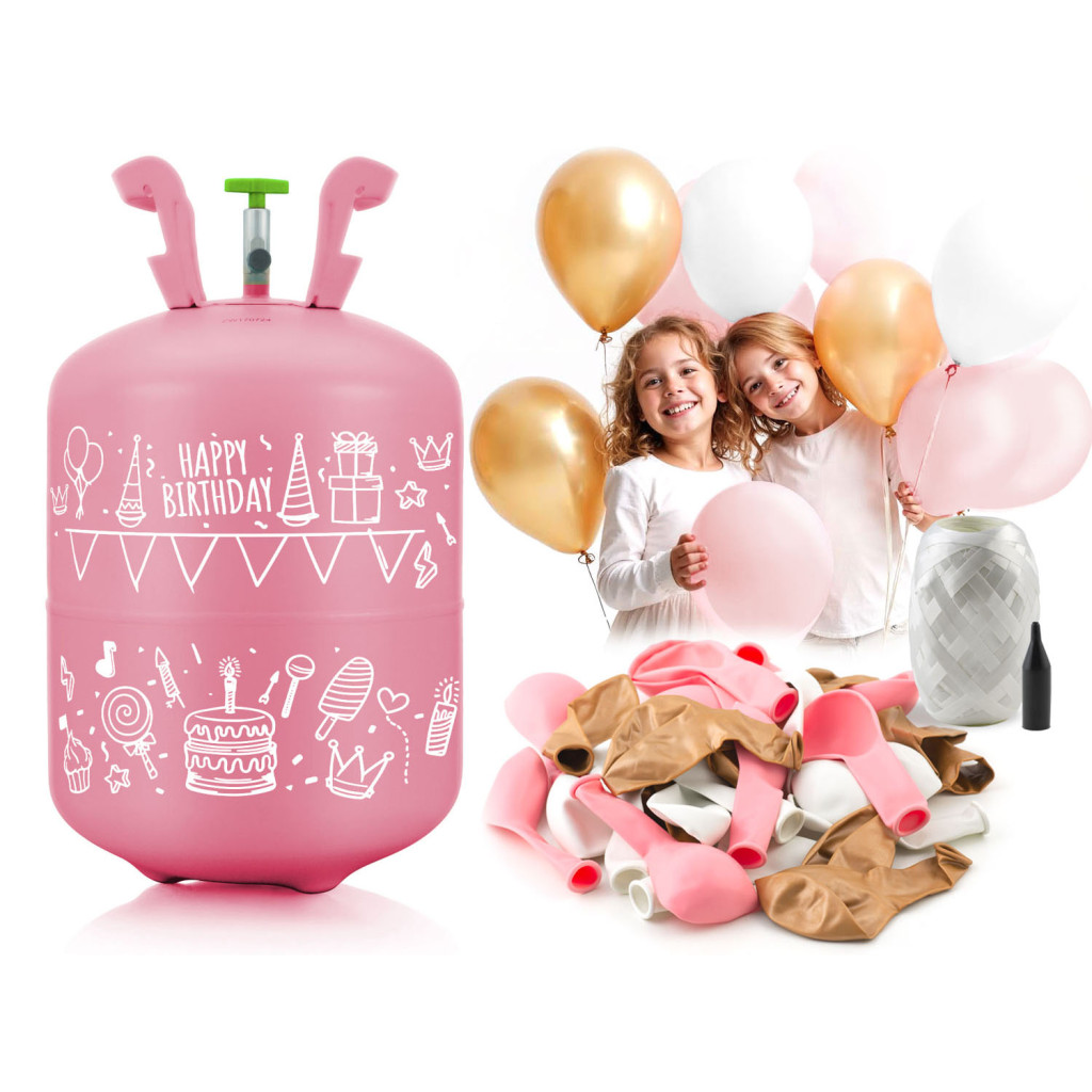 Varázsold színessé és lebegővé bármely ünnepet a Ricokids 0,20 m3 héliumpalackos lufikészlettel! A könnyű, mindössze 2,3 kg-os, egyszer használatos palack beépített minireduktorral érkezik, így pillanatok alatt felfújhatod a csomagban található 30 darab fehér, rózsaszín és arany lufit. A 40 m-es dekorációs szalaggal egyedi girlandokat, csokrokat készíthetsz, miközben a vidám, pink „Happy Birthday” palack önmagában is díszítőelem. Az EN71 és CE szabványoknak megfelelő készlet tökéletes választás születésnapra, esküvőre vagy babaváró bulira.