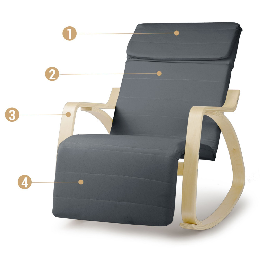 Ringató mozgása segít ellazulni egy hosszú nap után, miközben a testet követő, döntött háttámla tehermentesíti a gerincet. A levehető pamut huzatnak hála pillanatok alatt tisztítható, így a fotel hosszú távon is megőrzi friss, újszerű megjelenését. A fokozatmentesen állítható lábtartó lehetővé teszi, hogy mindig a számodra legkényelmesebb pihenőpozíciót válaszd – akár filmnézésről, akár könyvolvasásról van szó.