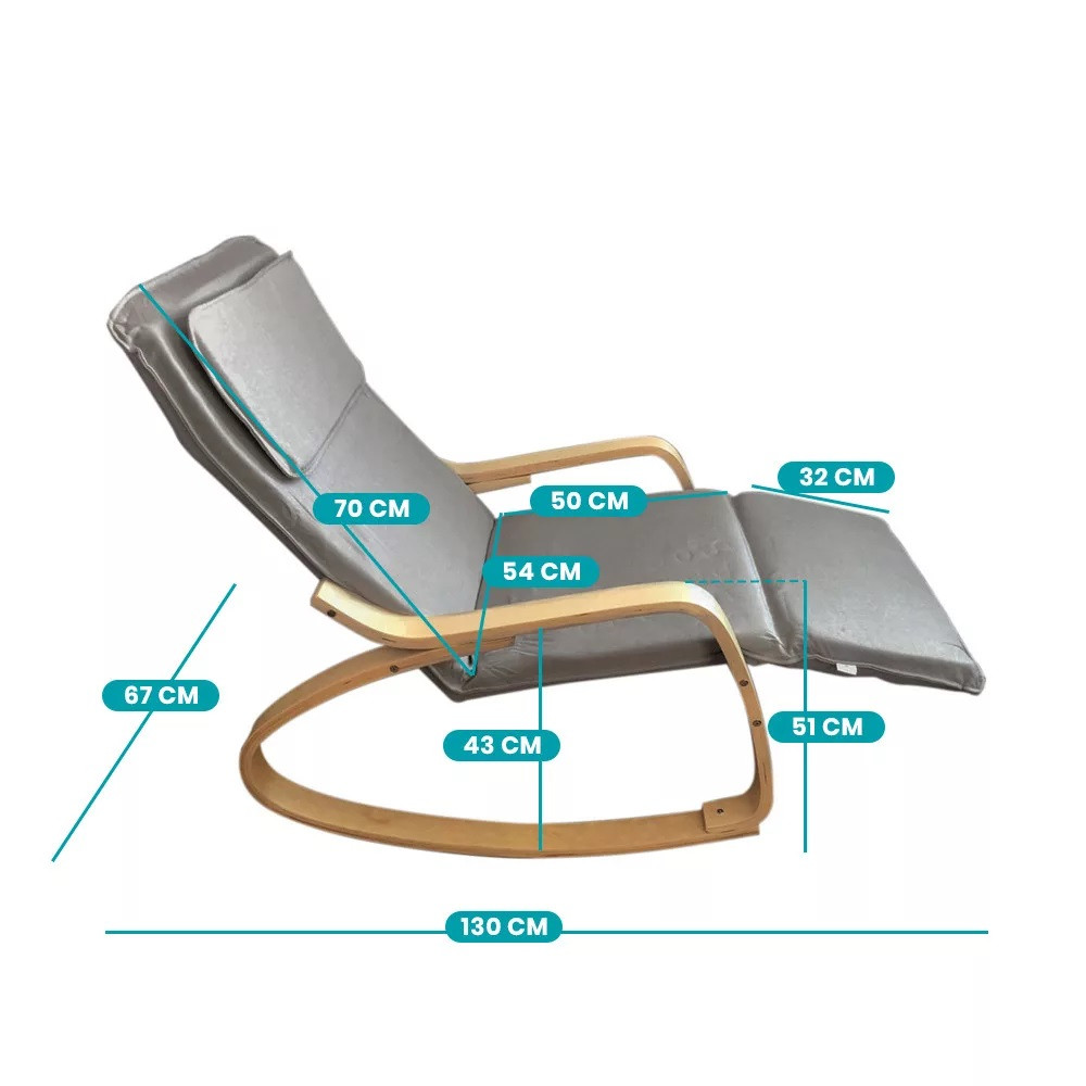 Élvezd a tökéletes kikapcsolódást az állítható lábtartós hintaszékkel, amely a stílust és a kényelmet egyesíti! A 6,5 cm vastag szivacs, a puha fejpárna és az 5 fokozatban állítható lábtartó gondoskodik a maximális pihenésről. Nyírfából készült váza stabil tartást és természetes megjelenést biztosít, miközben 150 kg teherbírásával biztonságos és tartós választás. Tökéletes olvasáshoz, relaxáláshoz vagy egy nyugodt délutáni szieszta eltöltéséhez.