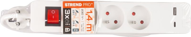 • 1 db Strend Pro LG-FB603K 3-as hosszabbító USB-A/USB-C töltőporttal