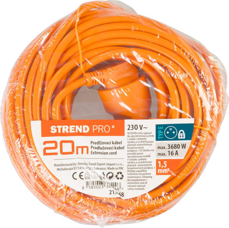 A Strend Pro DG-YFB01 narancssárga hosszabbító kábel 20 m-es hatótávolságával biztosítja, hogy a hálózati áram mindig kéznél legyen a kertben, a műhelyben vagy a garázsban. A robusztus PVC szigetelés jó védelmet ad a mechanikai behatások ellen, a feltűnő szín pedig csökkenti a megbotlás esélyét és az eltűnés kockázatát. A szabványos védőföldeléses csatlakozó és egy aljzat egyszerű, biztonságos csatlakoztatást garantál minden Európában elterjedt 230 V-os készülékhez.