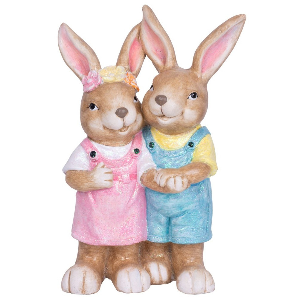Varázsolj tavaszi hangulatot otthonodba vagy kertedbe ezzel a kedves MagicHome kerámia nyuszipárral! A részletgazdag kidolgozású, mosolygó nőstény és hím nyúl szeretettel simul egymáshoz, így meghitt, barátságos légkört teremt. A 34 cm széles, 19 cm mély és 51 cm magas dísz tekintélyes méretével azonnal magára vonzza a tekintetet, mégis harmonikusan illeszkedik virágágyásba, teraszra vagy nappaliba. A tartós kerámia időtálló, jól bírja a kinti körülményeket és könnyen tisztítható.