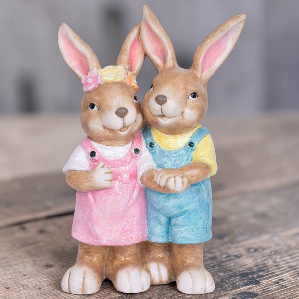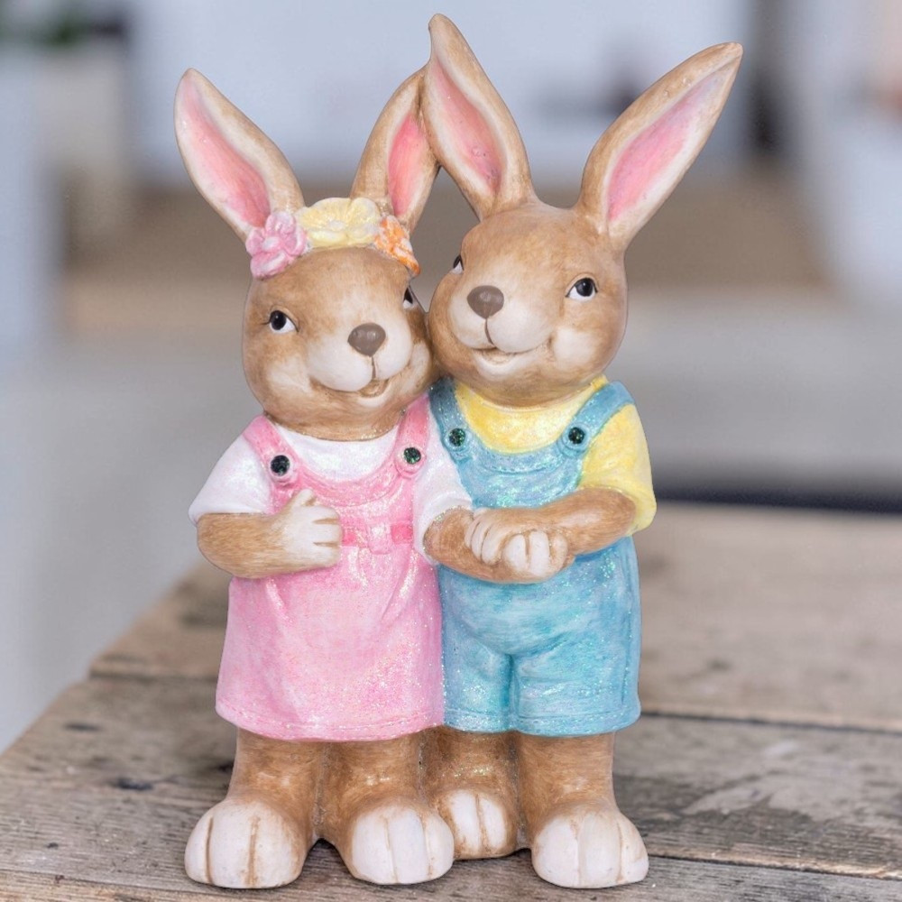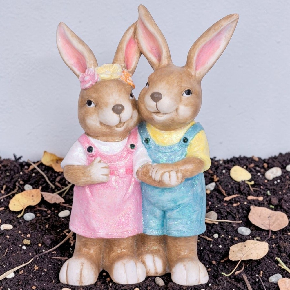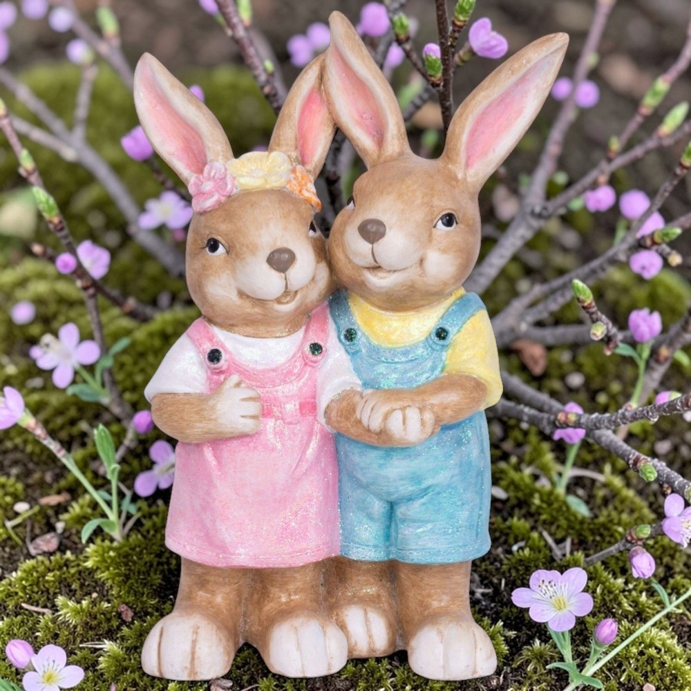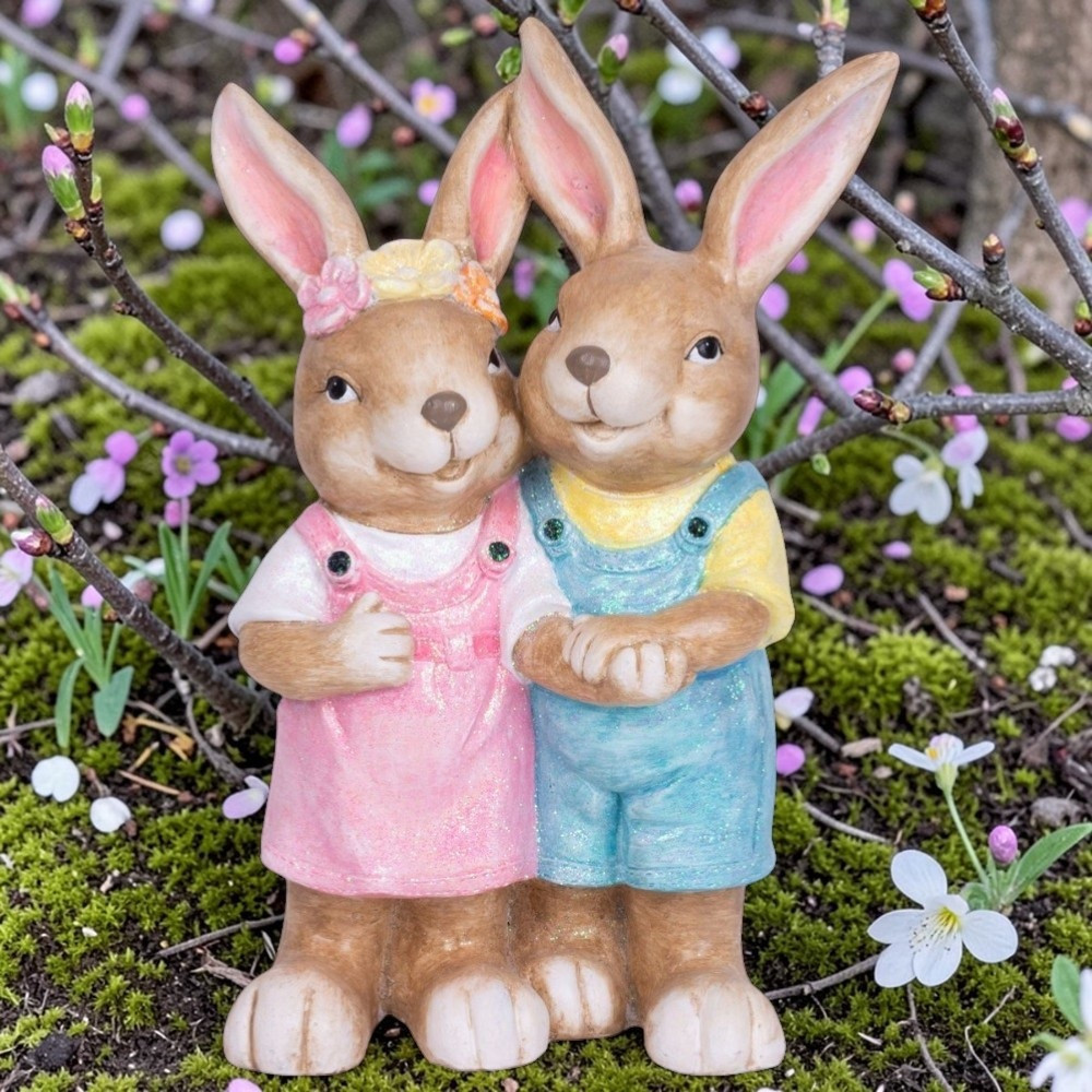 A finom pasztellszínek csillámos bevonattal lágy fényt vernek vissza, ezért napfényben és lámpafényben egyaránt ragyog. Az ölelkező tartás szeretetet és összetartozást sugall, ami minden látogatót mosolyra fakaszt. Nagyméretű kialakítása önmagában is teljes dekoráció, így nem kell több darabbal bajlódnod. A 4,59 kg-os tömeg stabilitást ad, erősebb szélben sem dől fel, így bátran helyezheted a teraszra vagy a kertbe.