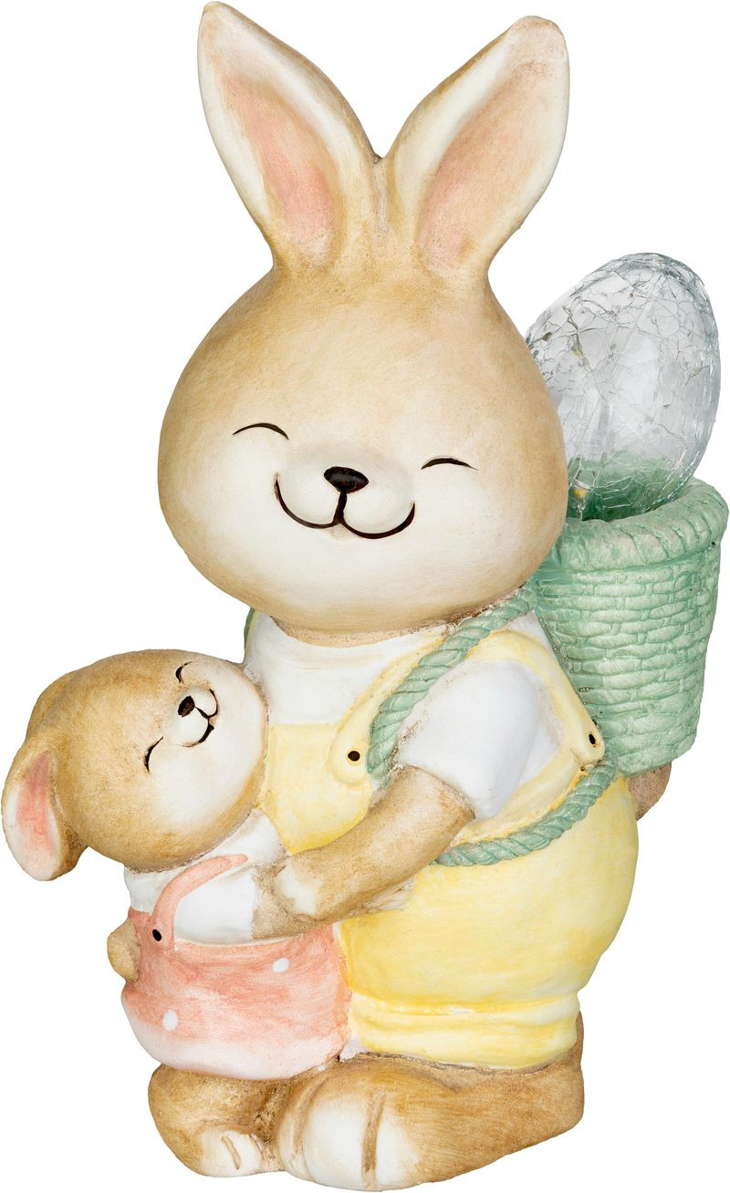 Ébreszd fel otthonodban a tavasz üde varázsát ezzel az elragadó MagicHome kerámia nyuszival, aki ölében békésen pihen apró fiókája, hátán pedig egy repedezett hatású tojást hordoz. A 17,8 × 25,5 × 39 cm-es méretnek köszönhetően kellően látványos, mégis könnyedén elfér polcon, komódon vagy a bejáratnál. Finom pasztell árnyalatai, gondos részletei és selymesen matt felülete otthonos meghittséget sugároz, így tökéletes kiegészítője minden húsvéti vagy tavaszi dekorációnak.