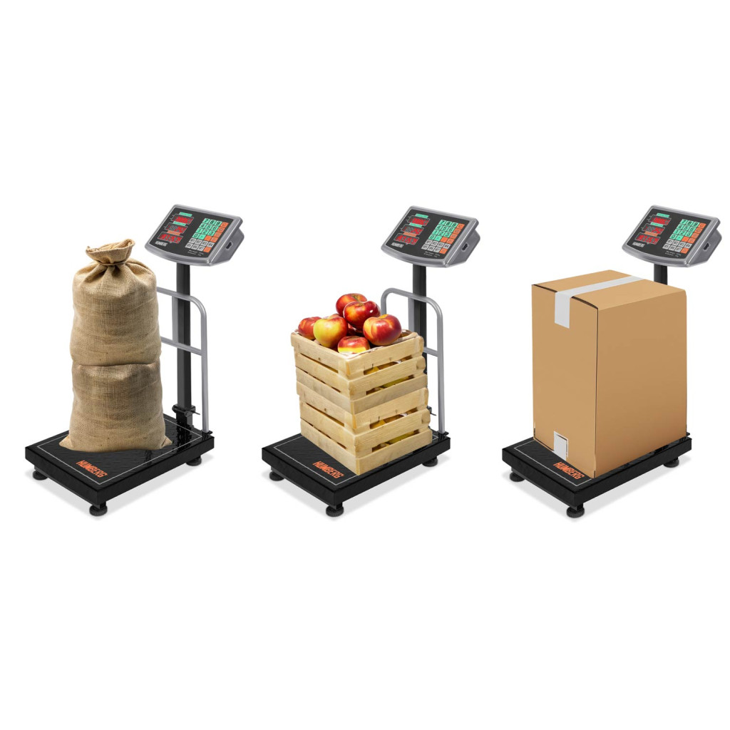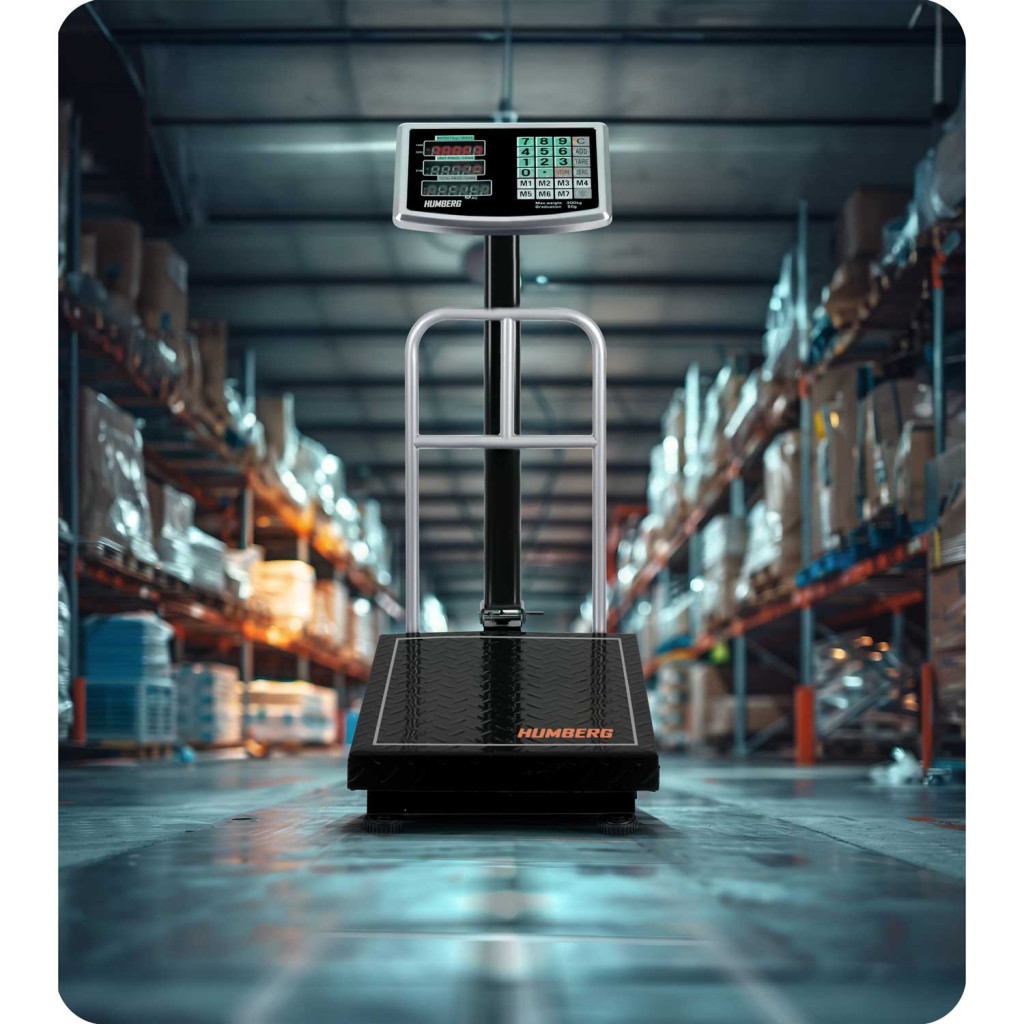 A Humberg MH-191 elektronikus ipari mérleg erős, porszórt acél vázzal és csúszásmentes, bordázott platformmal készült, hogy a mindennapi raktári és termelőüzemi terhelést hosszú távon is bírja. 150 kilogrammos teherbírása mellé 50 grammos osztásérték társul, így a nehezebb zsákok, ládák súlya is precízen követhető. A háttérvilágított, háromsoros LED kijelző a mért tömeget, az egységárat és az összértéket egyszerre mutatja, kezelése pedig a színkódolt nyomógombokkal gyors és hibamentes. A mindössze 7,5 kilogrammos saját tömegnek köszönhetően könnyen áthelyezhető, mégis stabil marad használat közben.