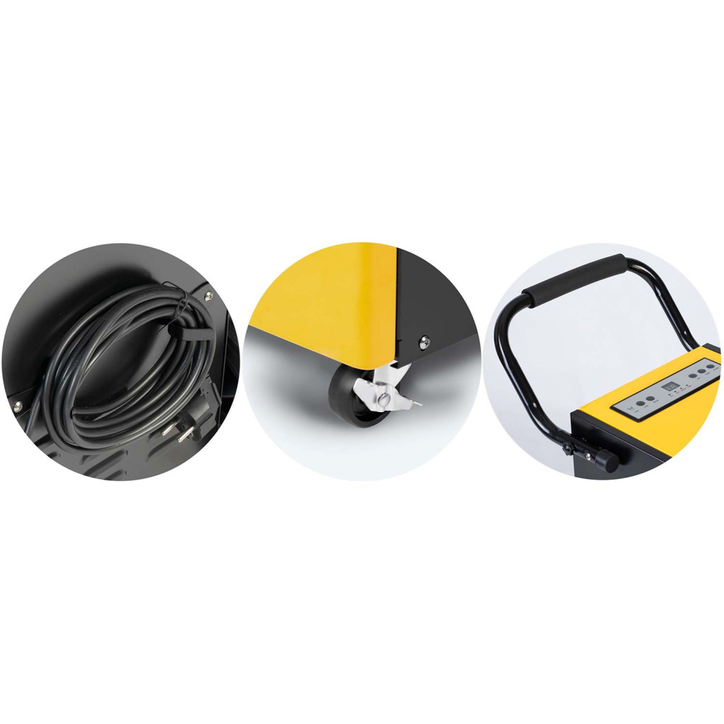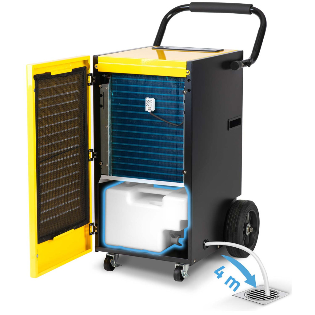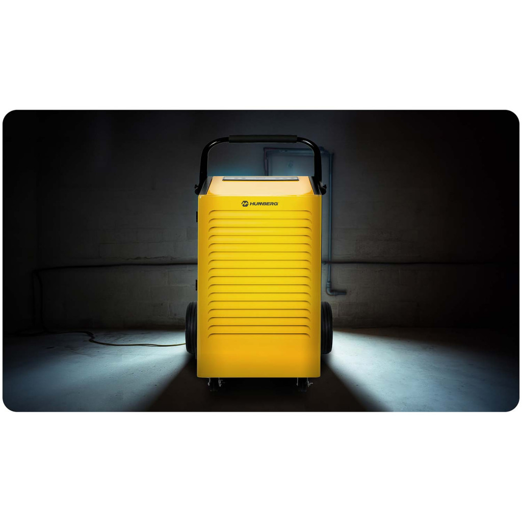 Felejtsd el a penészes falakat és a dohos levegőt – a Humberg HM-482 ipari páramentesítő egyetlen nap alatt akár 70 liter vizet von ki a levegőből. Robusztus, porszórt acéllemezes sárga-fekete burkolata ellenáll a mindennapi igénybevételnek. Nagyméretű kerekeken gurul, felső tolókarja pedig biztos fogást kínál, így könnyedén mozgatható nagy csarnokokban, raktárakban vagy építkezéseken.