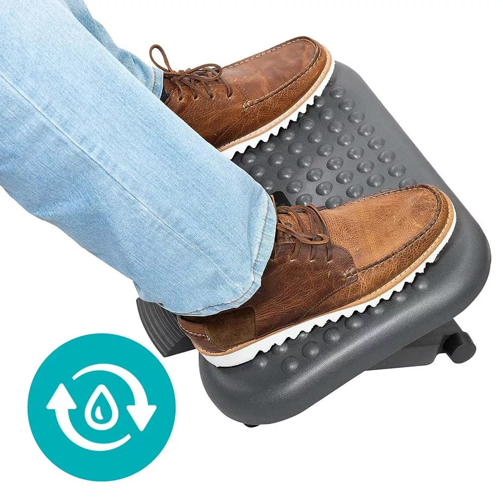 Ez a lábtámasz a komfort és az egészséges testtartás kulcsa! Segíti a vérkeringést, csökkenti a derék- és lábfájdalmat, miközben stabil, csúszásmentes felülete biztonságos használatot nyújt. Kompakt mérete miatt bármely íróasztal alá befér, így irodai és otthoni munkakörnyezetben egyaránt ideális választás. Tartós műanyag szerkezete hosszú távon is megbízható társ a mindennapokban.