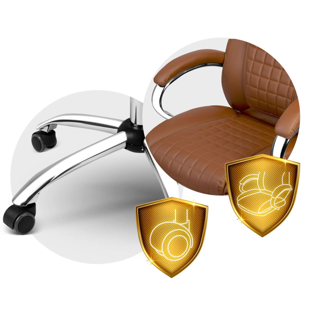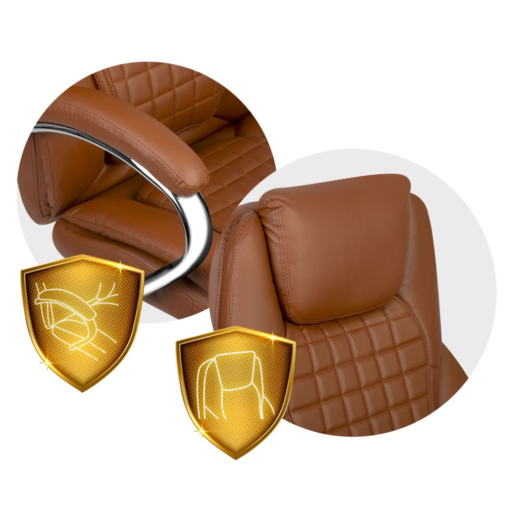 A Sofotel Batory barna irodai fotelével minden munkanapod prémium kényelemben telik. A sűrű, rugalmas habbal töltött ülőfelület és a gondosan megformált, ekobőrrel bevont háttámla tökéletesen támasztja a derekat, miközben elegáns, modern megjelenést kölcsönöz az irodádnak. A krómozott, karcálló ötágú talp stabil alapot ad, a SoftUp gázlifttel pedig pillanatok alatt beállíthatod az ideális ülésmagasságot.