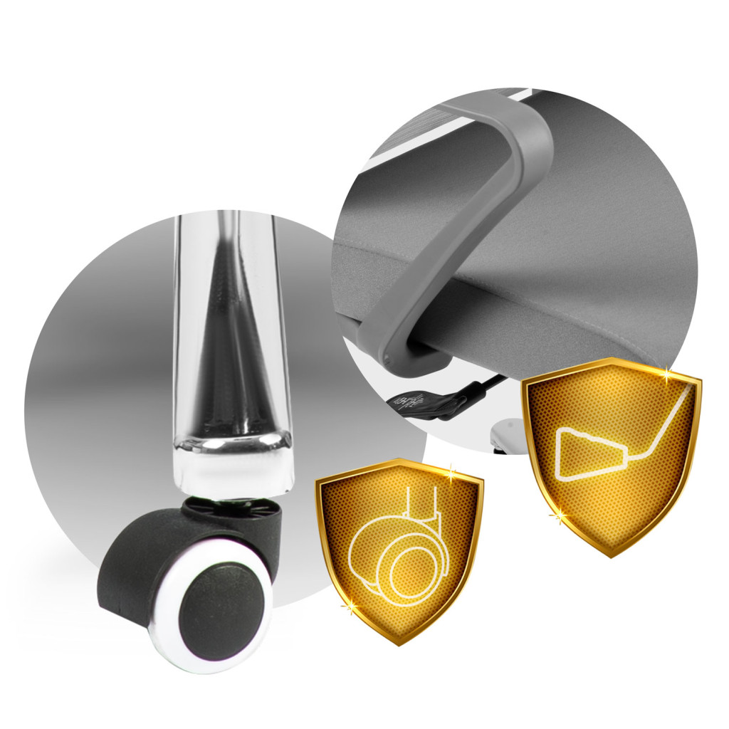 Mert egyszerre gondoskodik a tested és a munkád hatékonyságáról. A rugalmas háttámlába épített deréktámasz követi a gerinc ívét, így csökkenti a feszültséget. A csendes, puha görgők óvják a padlót és zajtalanul gurulnak, a 360°-os forgás pedig megkönnyíti a tárgyak elérését. Tartós acélvázának köszönhetően nagy teherbírású, mégis könnyű mozgatni. Letisztult szürke árnyalata bármely irodai környezetet elegánssá varázsol.