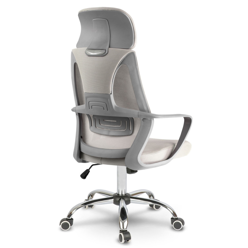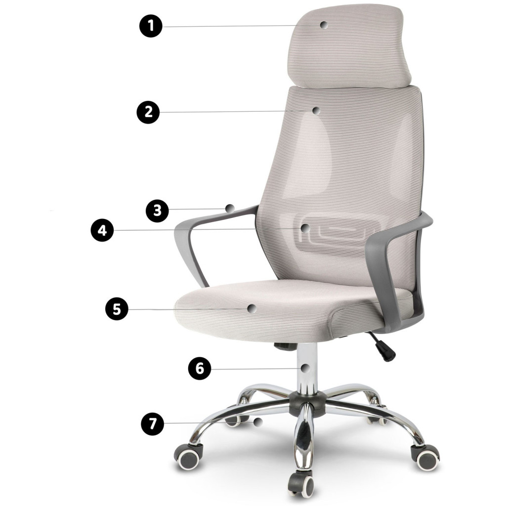 A Praga hálós irodai fotel modern vonalai és légies, világosszürke megjelenése azonnal friss hangulatot teremt a munkatérben. A légáteresztő mikrohálós háttámla és a formázott deréktámasz tehermentesíti a gerincet, a gázliftes ülőmagasság-állítás (45–50 cm) pedig gondoskodik róla, hogy a szék mindig a testedhez igazodjon. Az ergonomikus fejtámla pihenteti a nyakat, míg az ötküllős, gumírozott görgős talp stabil alapot és karcmentes gurulást biztosít.