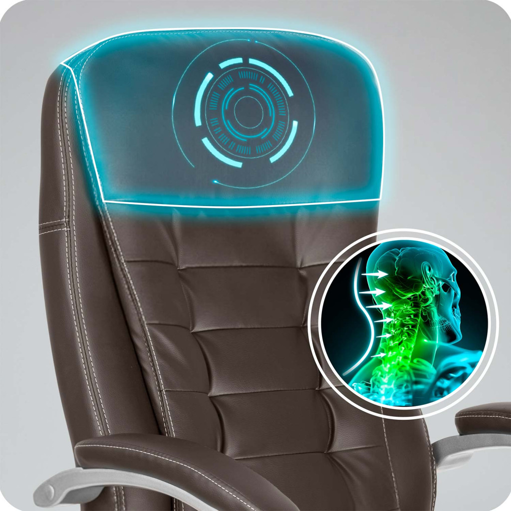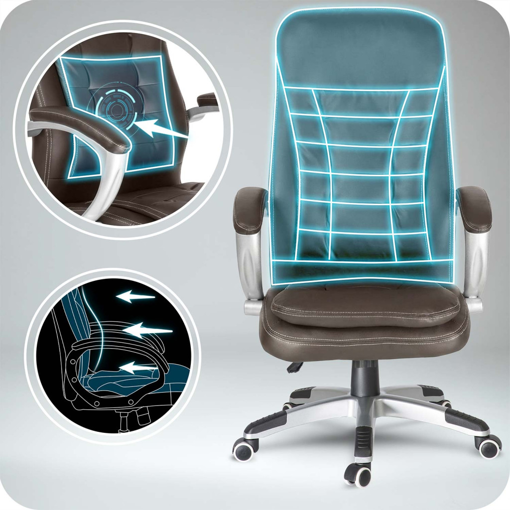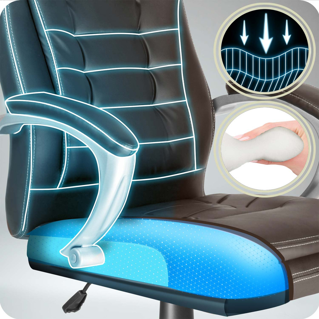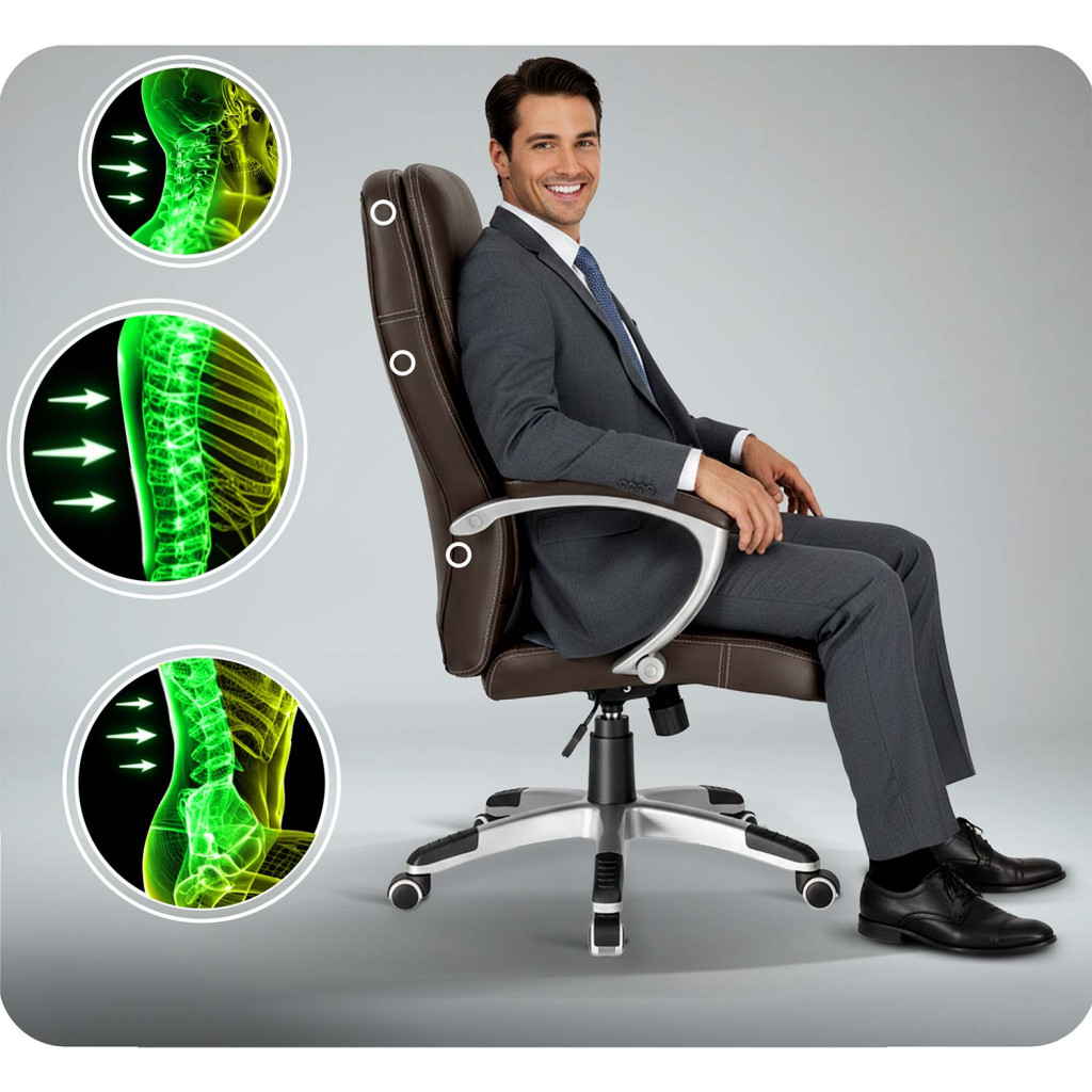 Az ergonómiailag ívelt háttámla természetes tartást biztosít, a beépített hintamechanika pedig segít lazítani egy hosszú tárgyalás után. A gázliftes kar segítségével pillanatok alatt személyre szabhatod az ülésmagasságot, a párnázott kartámaszok pedig leveszik a terhet a vállakról. Masszív fém váza hosszú távon is megbízható társ, miközben a stílusos barna műbőr minden környezetben megállja a helyét.
