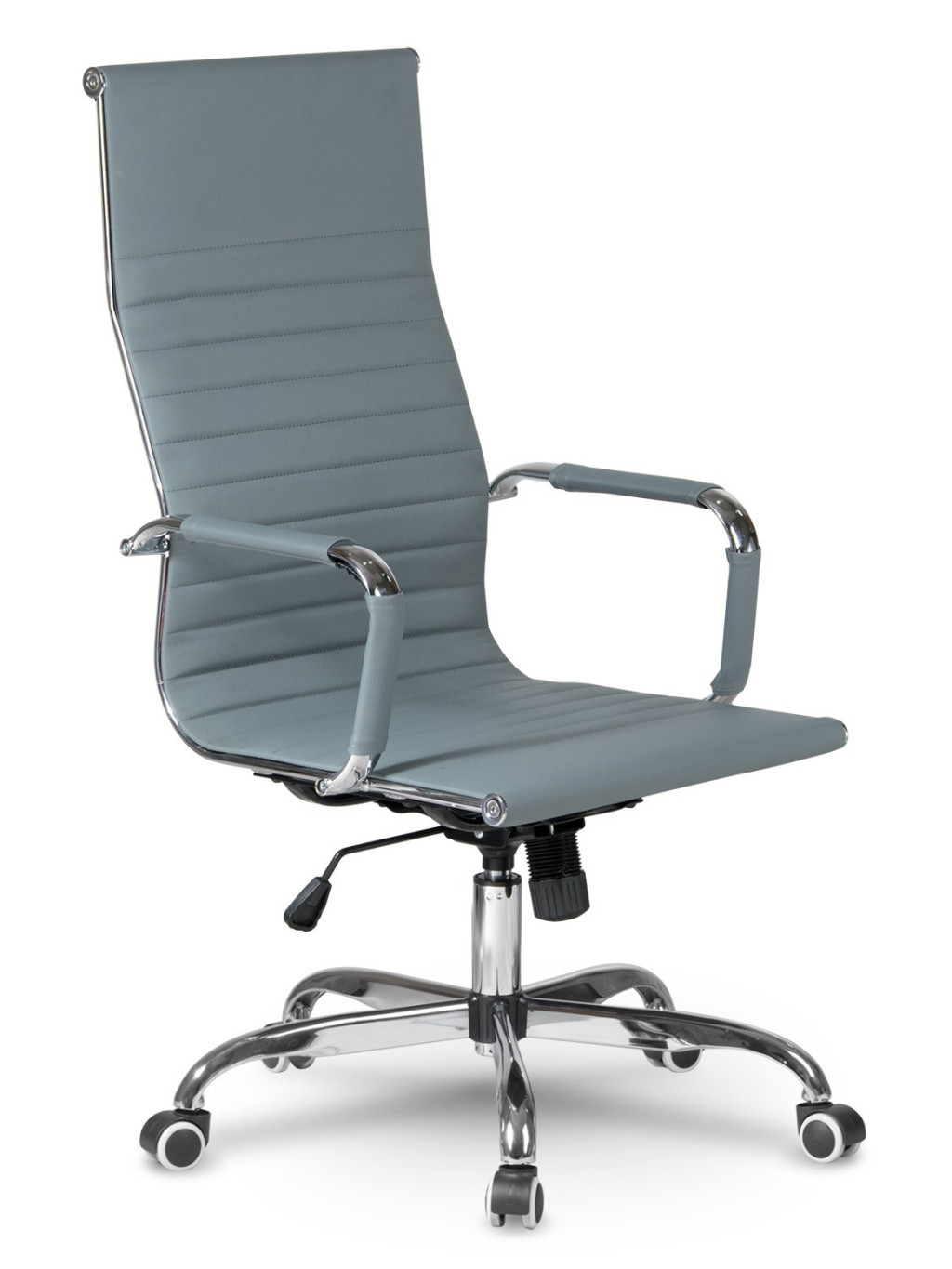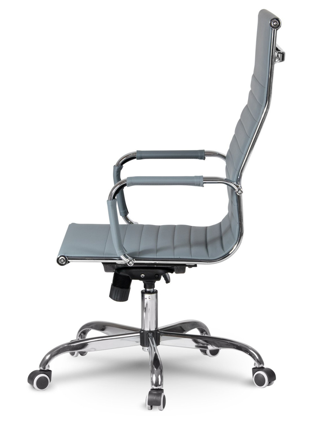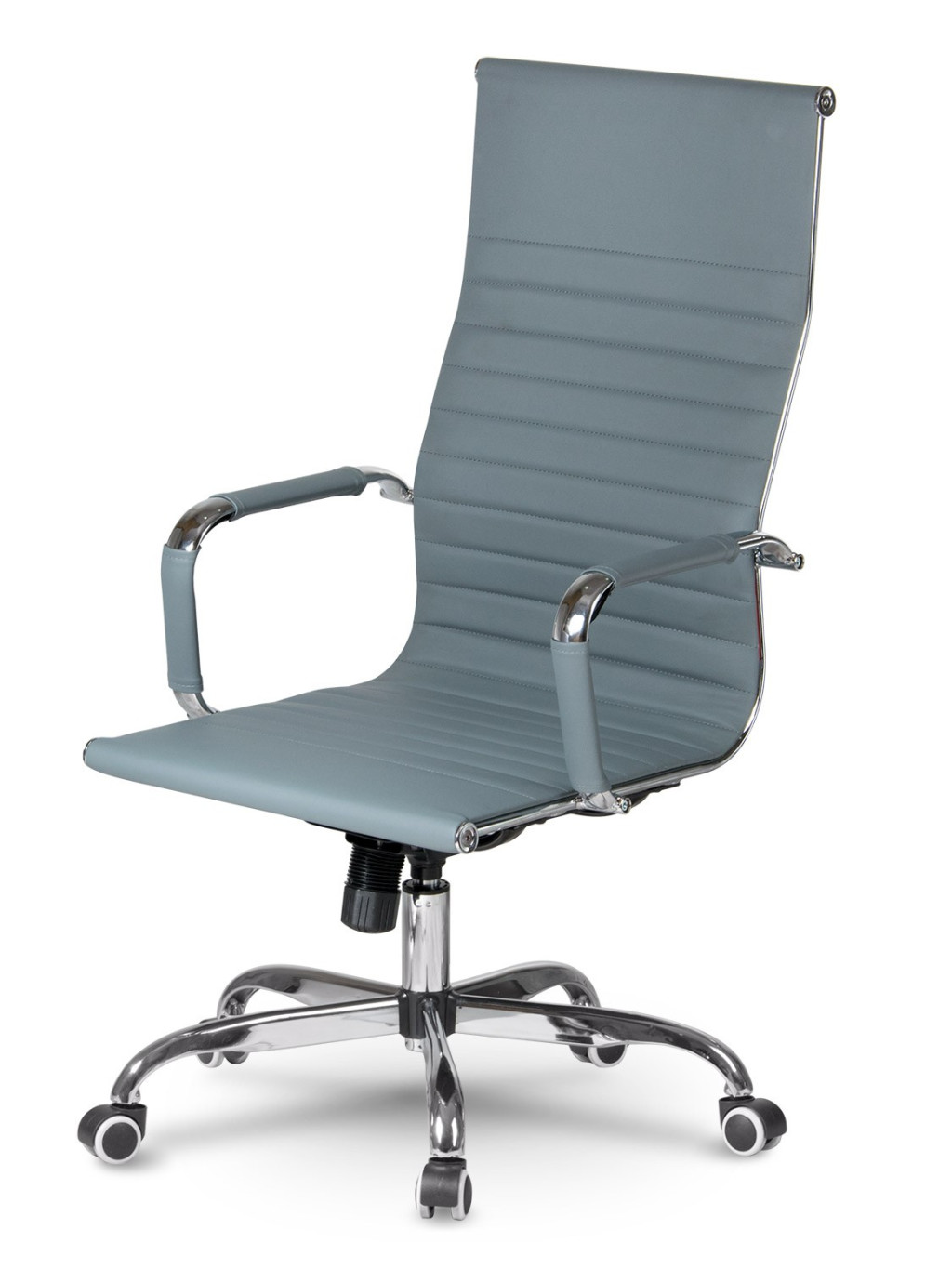 A Sofotel Tokio irodai fotel modern, letisztult vonalvezetésével és elegáns szürke színével emeli bármely munkatér stílusát. A magas, ergonomikusan formázott háttámla és a krómozott acélelemek tökéletes egyensúlyt teremtenek a dizájn és a kényelem között. A puha, strapabíró ökobőr kárpit végigfut a háttámlán és az ülőfelületen, így hosszú órákon át biztosítja a pihentető testtartást. A forgatható, gázliftes mechanika könnyed magasságállítást kínál, a TILT funkció pedig lehetővé teszi a döntést és a ringató mozgást, hogy minden pillanatban személyre szabott támogatást kapj.