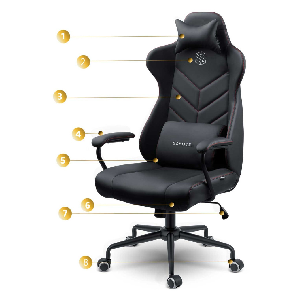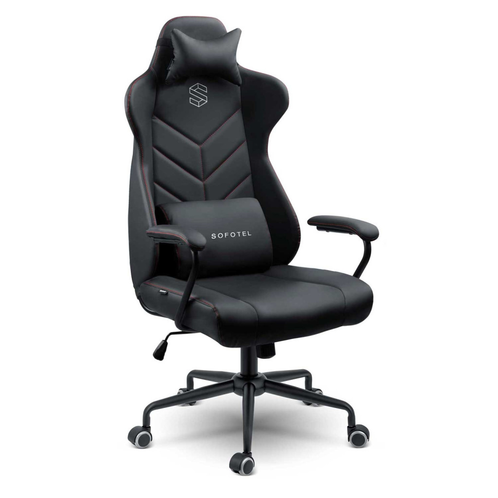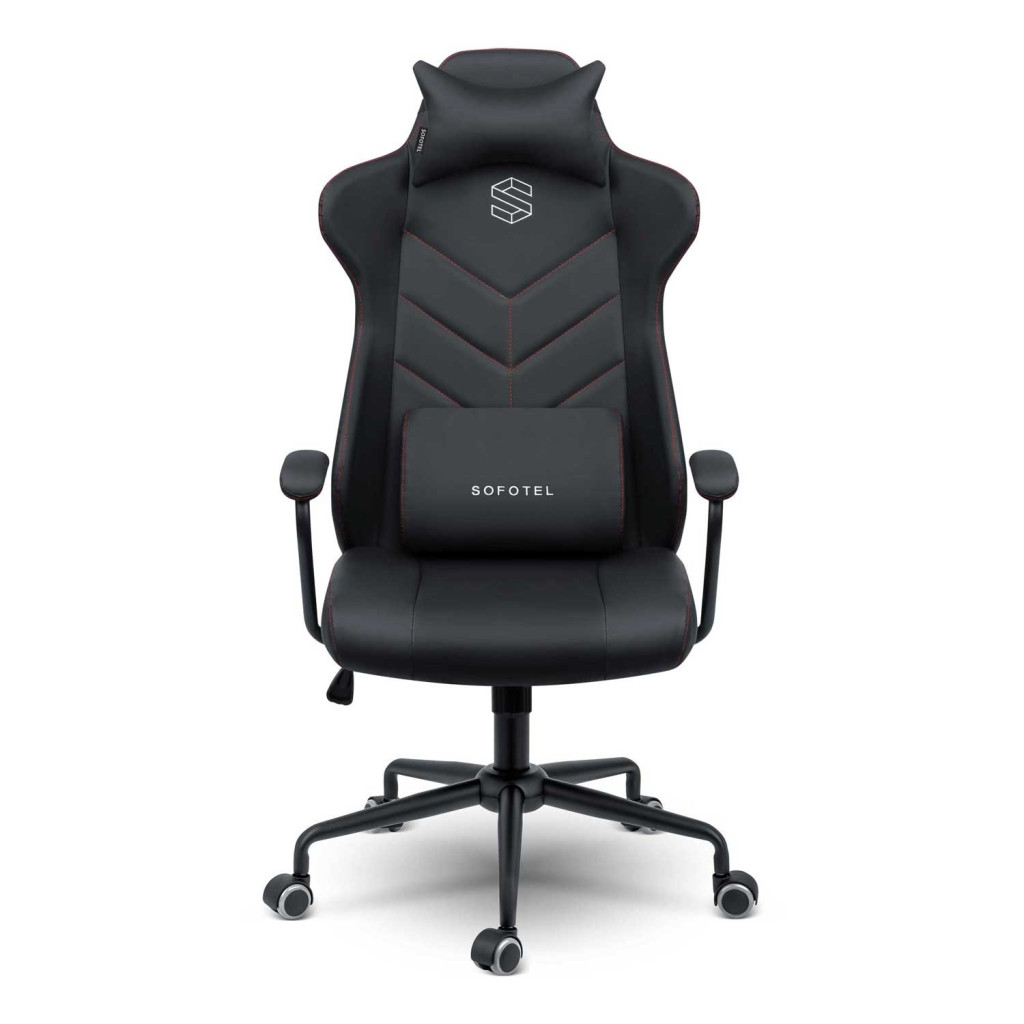 A Sofotel Werona irodai fotel elegáns, fekete ekobőr borításával és V-mintás díszvarrásával azonnal prémiummá varázsolja irodád vagy gamer-sarkod hangulatát. A rugalmas, légáteresztő habbal párnázott ülőfelület, valamint a kivehető derék- és fejpárna tökéletesen követi a test vonalát. A SoftUp gázlift 41–48 cm között állítható, míg a SoftSwing hintamechanika pihentető ringatózást kínál. A masszív, ötszárú fém talp nylon–kaucsuk kerekei halkan gurulnak, nem karcolják a padlót, 120 kg-ig terhelhetők.