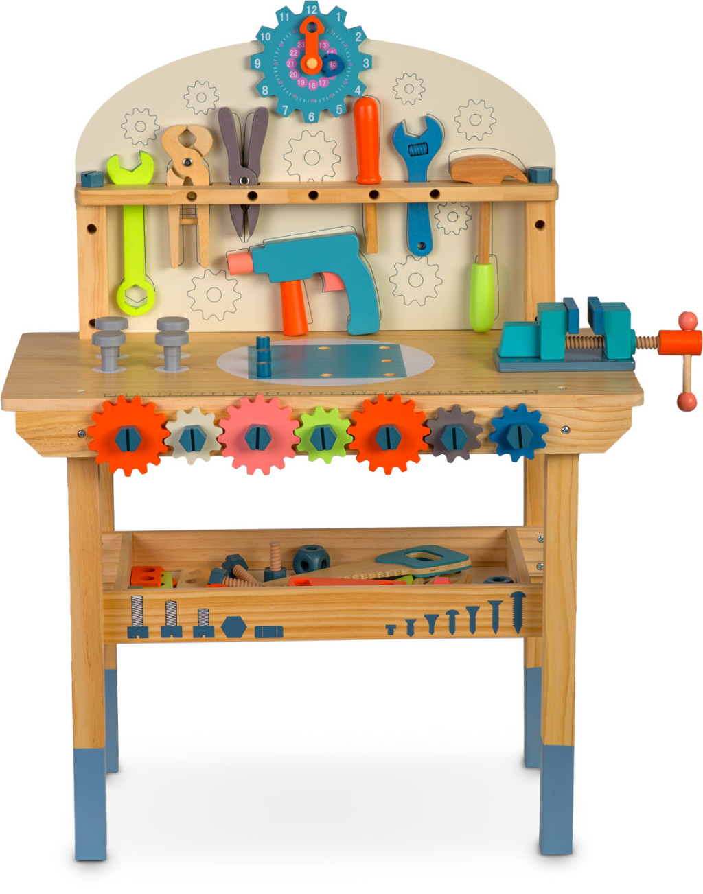 Fedezd fel a barkácsolás varázsát a Drewniany warsztat z narzędziami RK-876 Ricokids fa munkapaddal! A természetes fából készült, stabil szerkezet biztonságos alapot nyújt az apró ezermestereknek, miközben az élénk színek azonnal megragadják a figyelmet. Több mint ötven különféle alkatrész – fogaskerekek, csavarok, anyák és élethű kéziszerszámok – kínálnak kimeríthetetlen építési és szerepjáték-lehetőséget. A beépített polcok és akasztók segítenek rendben tartani a szerszámokat, így minden elem könnyen elérhető marad.