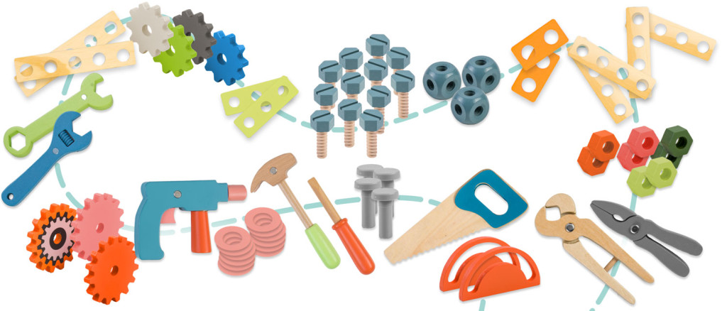Ez a komplex barkácsállomás játékosan fejleszti a finommotorikát, a szem-kéz koordinációt és a logikus gondolkodást. A csavarozás, kalapálás és fűrészelés imitálása során a gyerekek megtapasztalják az ok-okozati összefüggéseket, a fogaskerekek mozgatása pedig látványosan demonstrálja a mechanikai elvet. A sokféle forma és szín támogatja a vizuális érzékelést, míg a szerepjáték önbizalmat és kreatív problémamegoldó képességet épít.