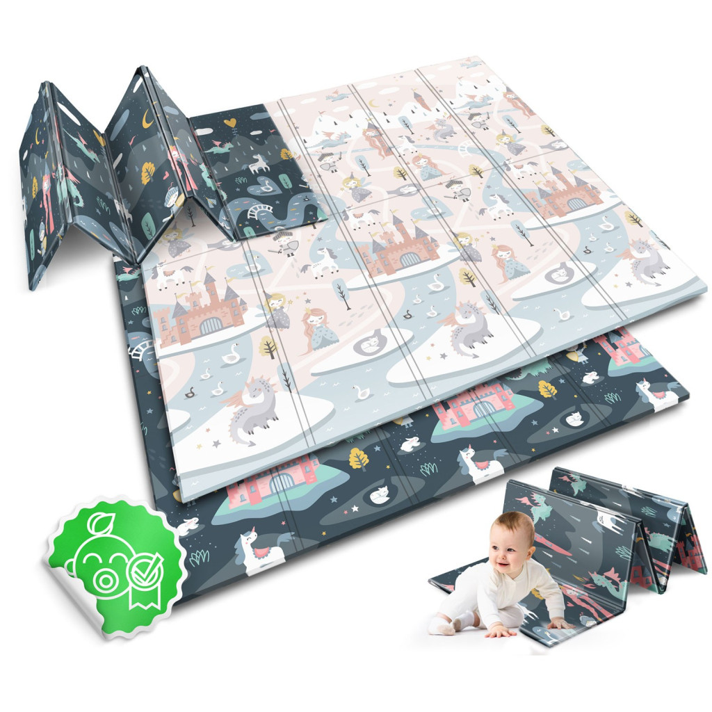 Fedezd fel a Nukido NK-340 összehajtható habszőnyeget, amely 200 × 180 cm-es, bőséges játszófelületet kínál, miközben 1 cm-es vastagságával puha és védelmező marad. A prémium, szagtalan XPE hab rugalmasan tompítja az eséseket, hőszigetel a hideg padlótól, és a speciális forró préselésnek köszönhetően nem sérül hajtogatáskor. Kétoldalas, mesebeli kastélyos–sárkányos mintái pasztell, illetve éjszakai tónusban inspirálják a játékot. Pehelykönnyű, mindössze 1,7 kg, így bárhová magaddal viheted.
