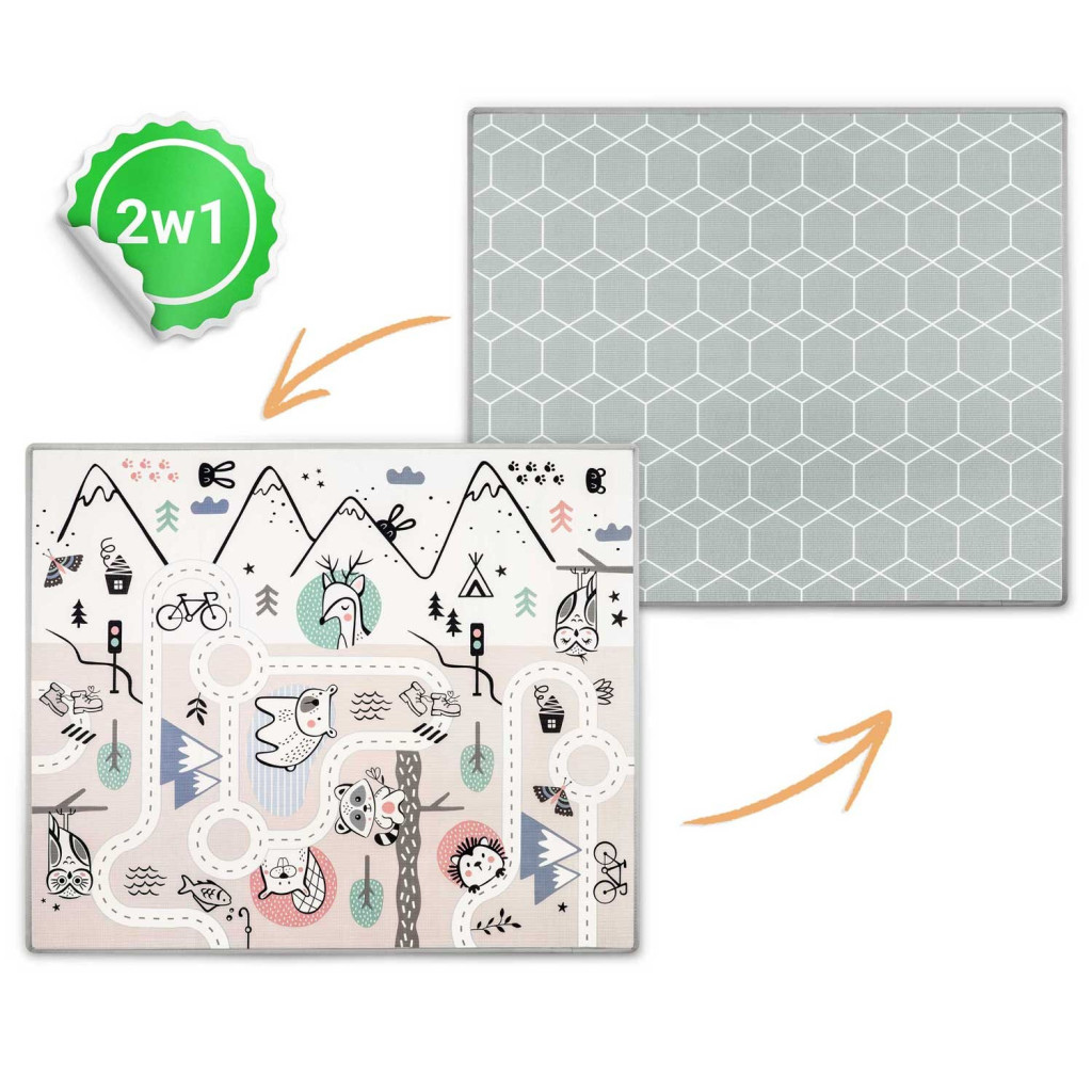 Alakíts ki biztonságos, meleg és játékra hívogató teret a Nukido NK-342 feltekerhető habszivacs fejlesztő szőnyeggel! A 180 x 150 cm-es, 1,5 cm vastag XPE hab kellemesen puha, mégis stabil alapot nyújt a kúszáshoz, totyogáshoz és közös tornához. Kétoldalas: az egyik oldalon pasztell hegy-völgy útvonalak állatfigurákkal segítik a korai felfedezést, a másikon letisztult szürke hatszögminta simul bármely nappali stílusához. Pehelykönnyű (mindössze 1,5 kg), így könnyen áthelyezheted, össze- és kitekerheted.