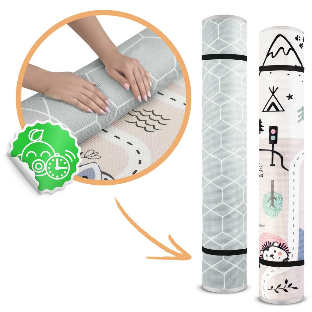 Rendkívüli hőszigetelő képességének köszönhetően védi a kicsiket a hideg padlótól, vastag habrétege pedig tompítja az eséseket. A csúszásgátló felület biztonságos mozgást kínál, az XPE anyag pedig szagmentes, antiallergén és BPA, PVC, ftalát valamint formamid mentes. A kompakt, feltekerhető kialakítás megkönnyíti a tárolást és a szállítást, a vízálló bevonat miatt pedig egy nedves törlőkendővel pillanatok alatt tisztává varázsolható.