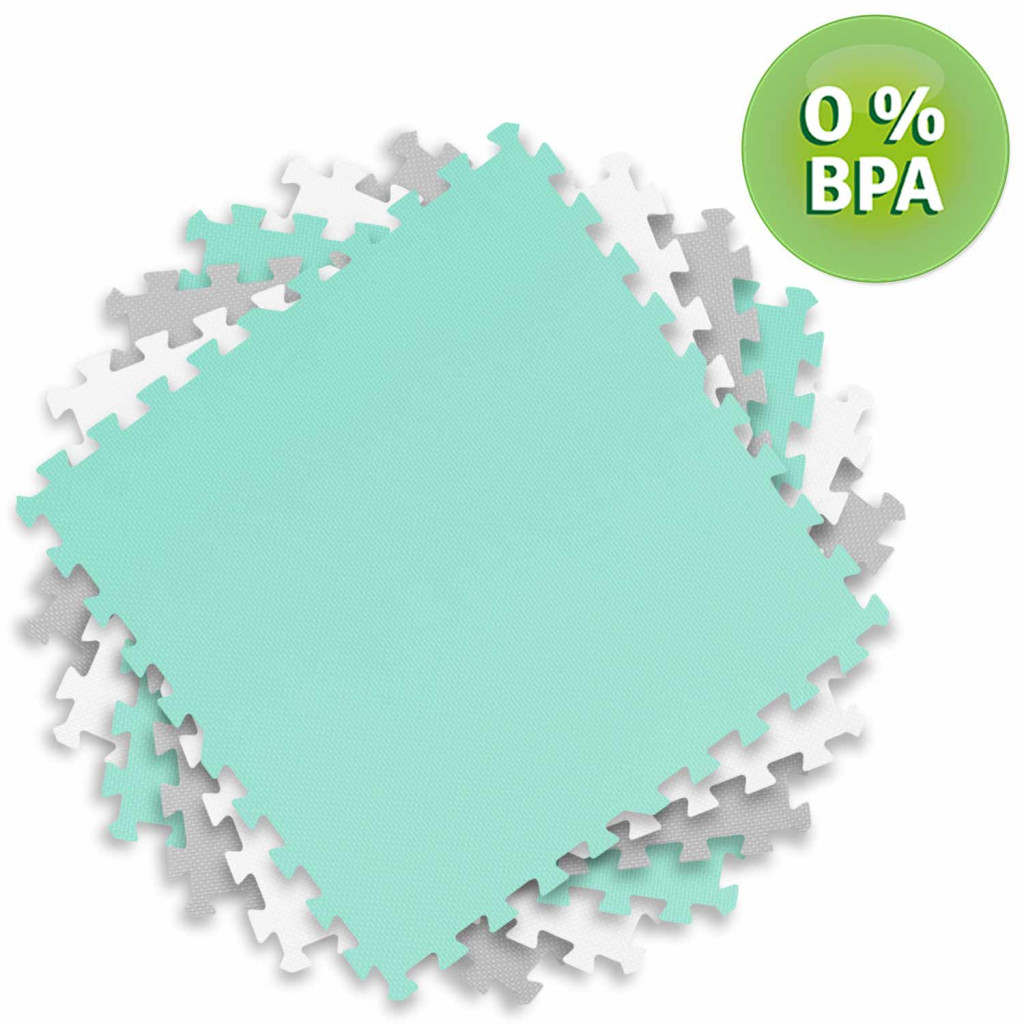Építs biztonságos, puha játszóteret gyermekednek a Ricokids nagyméretű habszivacs puzzle szőnyegével! A kilenc darab, egyenként 60 x 60 x 1 cm-es lapból pillanatok alatt 180 x 180 cm-es játszófelület állítható össze, amely rugalmas EVA habból készült, hogy tompítsa az eséseket és kellemes hőszigetelést adjon. A szürke, türkiz és fehér blokkok barátságos, modern hangulatot visznek a gyerekszobába, miközben csúszásgátló felületük magabiztos mozgást enged a kicsiknek. Könnyű, gyorsan tisztítható, hordozható – ideális társ a mindennapi játékhoz.