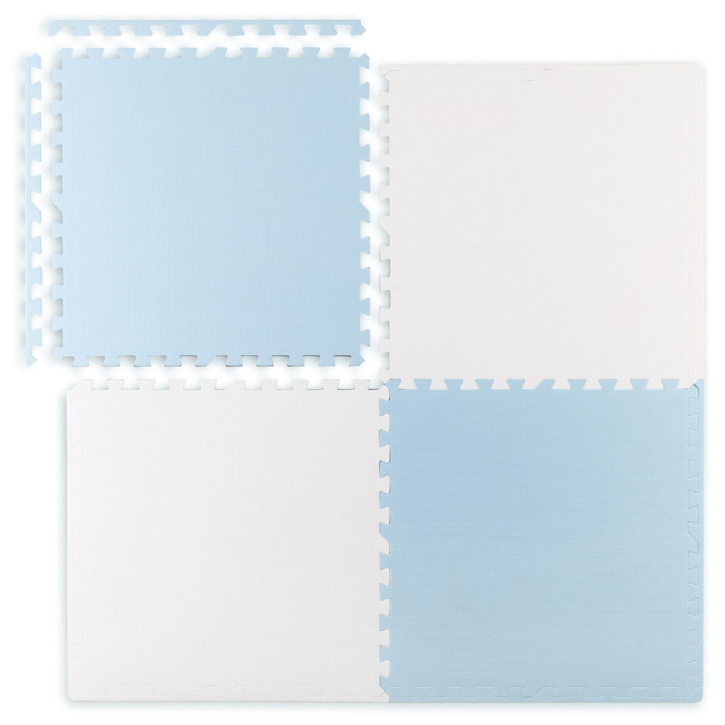 Teremts biztonságos és barátságos játszóteret a Ricokids 60x60 cm-es habszivacs kirakólappal! A csomagban négy, extra vastag (1 cm) EVA lapot találsz, amelyekből 120x120 cm-es, puha játszószőnyeg állítható össze. A kék-fehér, pasztell színek harmonikusan illeszkednek bármely gyerekszobába, miközben a rugalmas, csúszásmentes felület megóvja a kicsiket a hideg padlótól és a kemény ütések okozta sérülésektől. A sűrű anyag kiváló hőszigetelést nyújt, szagtalan, portaszító és vízlepergető, így allergiára hajlamos babák mellett is bátran használható.