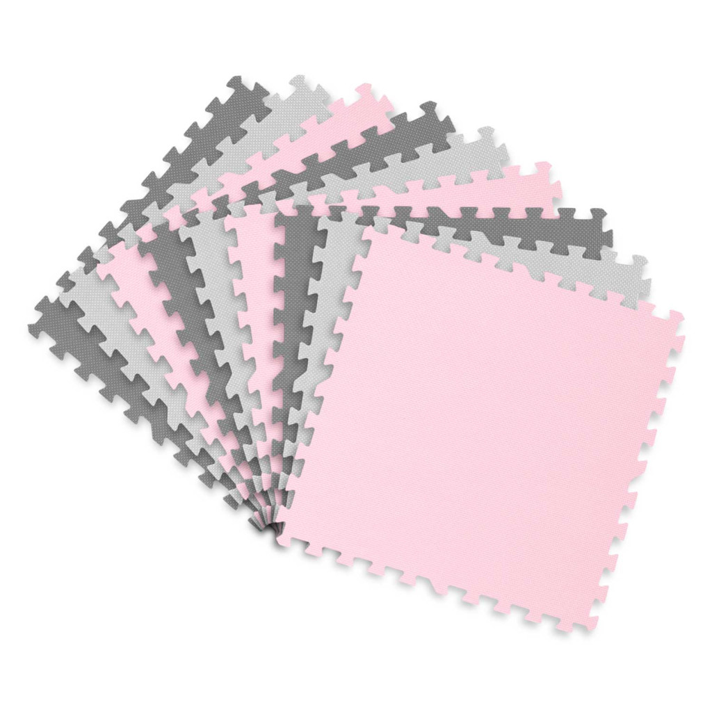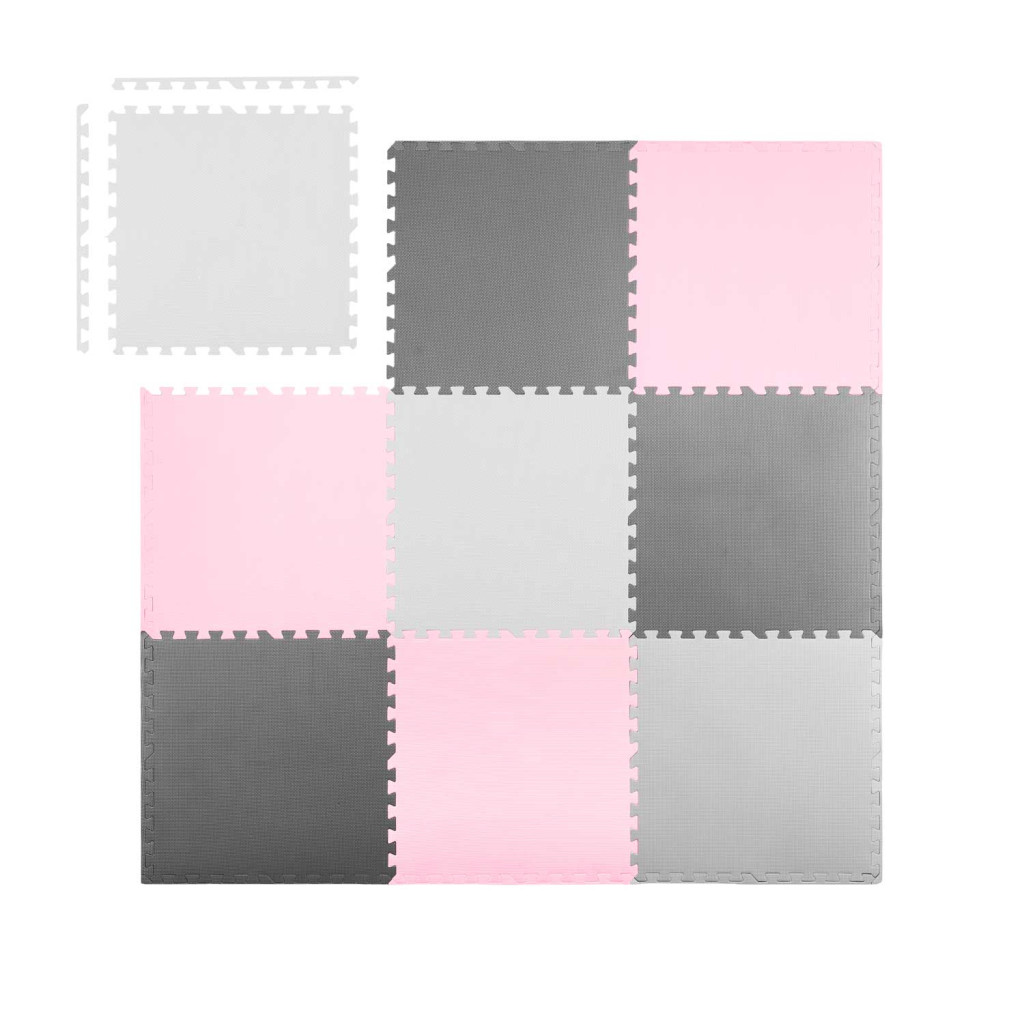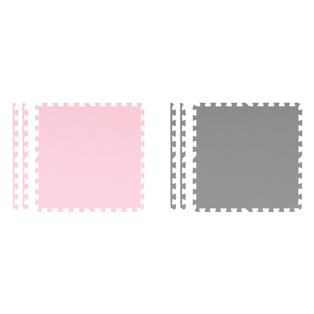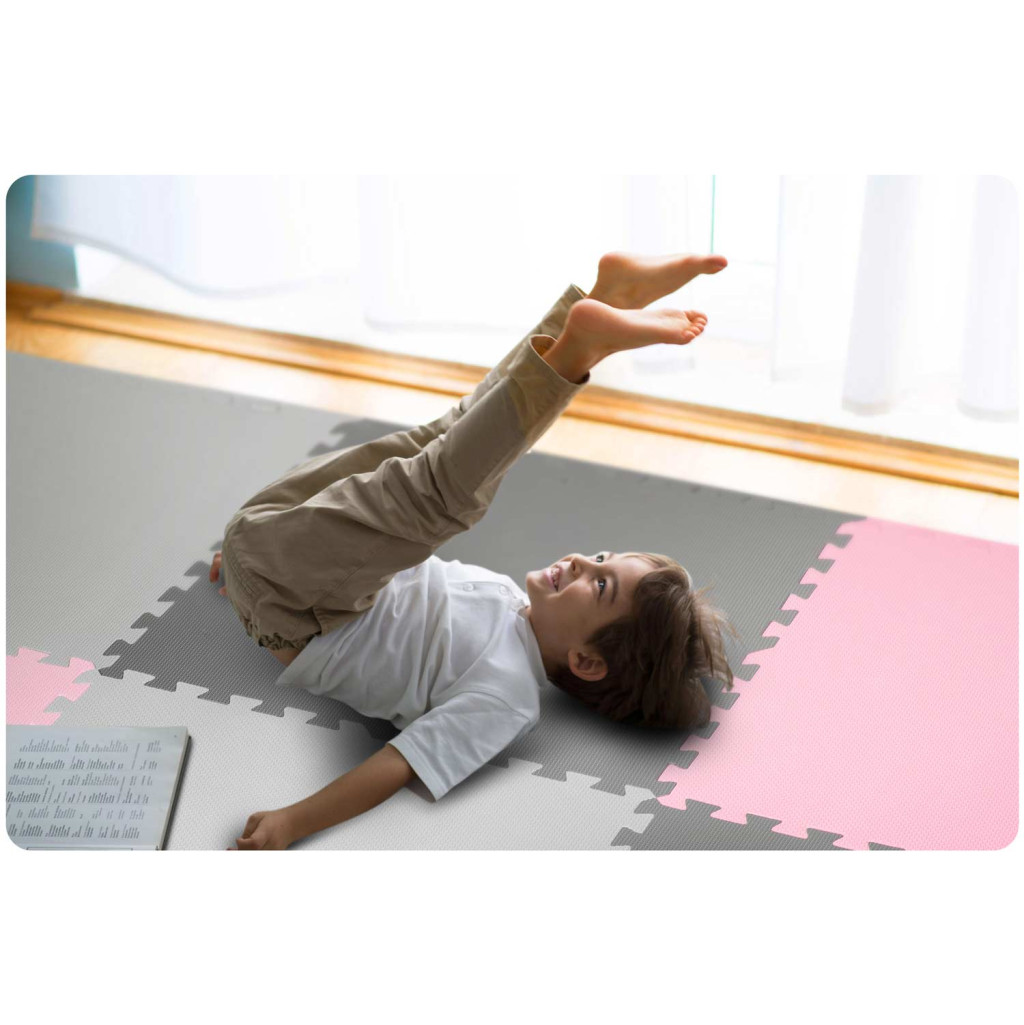Építs biztonságos és vidám játszóteret otthonodban a Ricokids habszivacs kirakós szőnyeggel! A csomagban 9 darab, 60 x 60 cm-es, egycentis vastagságú lapot találsz, amelyekből 180 x 180 cm-es puha felület állítható össze. A kéttónusú szürke–rózsaszín elemek friss, barátságos hangulatot kölcsönöznek a gyerekszobának, miközben a sűrű EVA hab hatékonyan csillapítja az eséseket, szigetel a hideg padlótól és csúszásgátló textúrájával gondoskodik a stabil játékról.