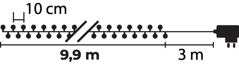 Varázsolj mesebeli hangulatot az ünnepi kertbe a MagicHome Vianoce Cherry Balls LED fényfüzérrel! A 9,9 m hosszú, zöld kábelre fűzött 100 darab színes, gömb alakú LED izzó vidám ragyogást ad a fának, erkélykorlátnak vagy pergolának. IP44 fröccsenésálló védelemmel készült, így bátran használhatod kültéren is, a 3 m-es tápkábel pedig kényelmesen eléri a konnektort. A beépített vezérlő 8 különböző fényprogramot kínál az ünnepi hangulat megteremtéséhez.