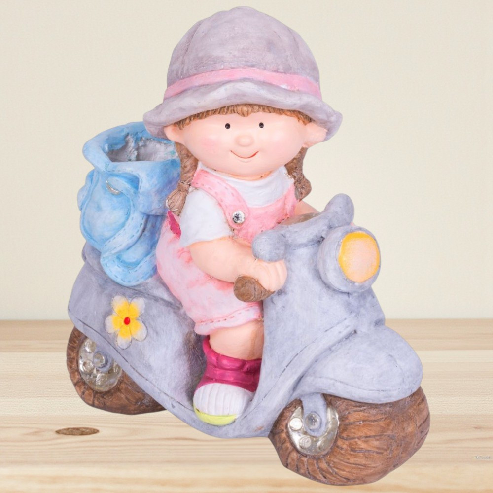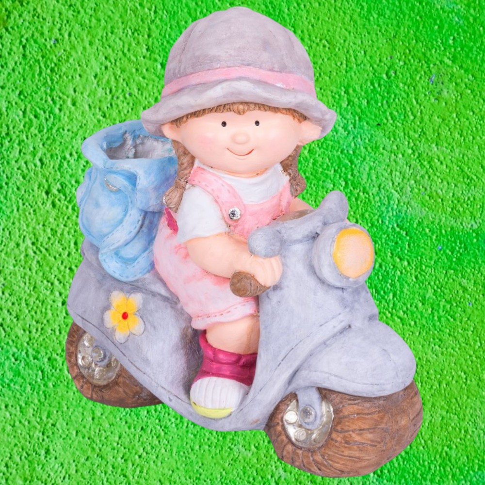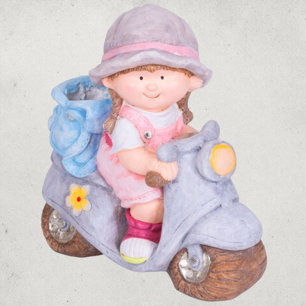• Kialakítás: kislány robogón, hátul virágtartó rekesszel