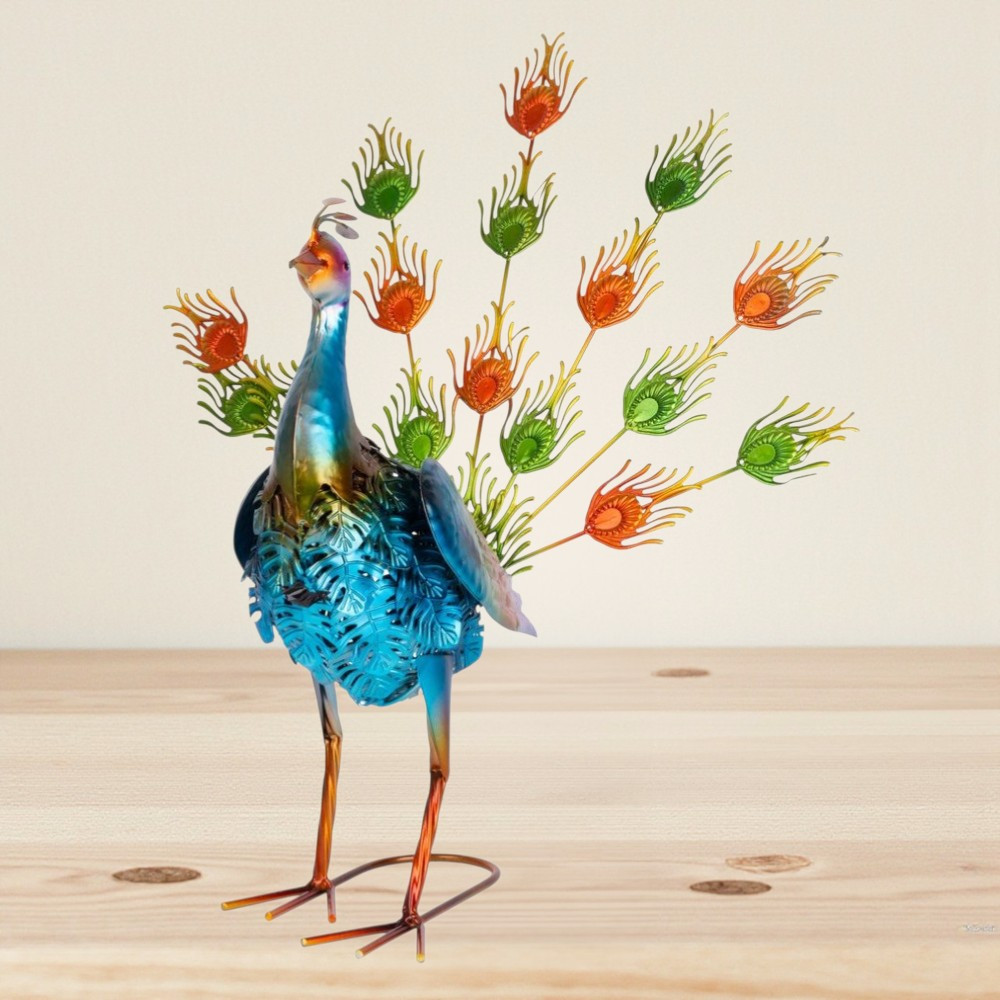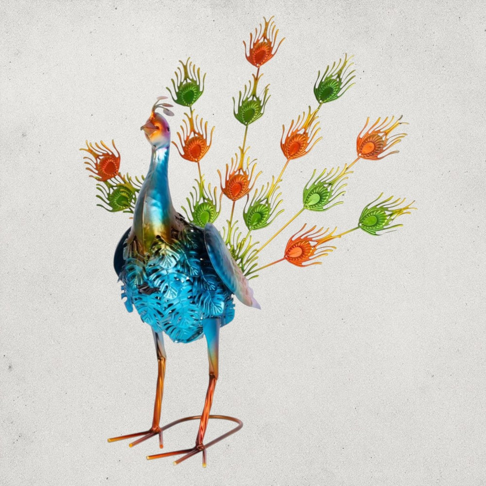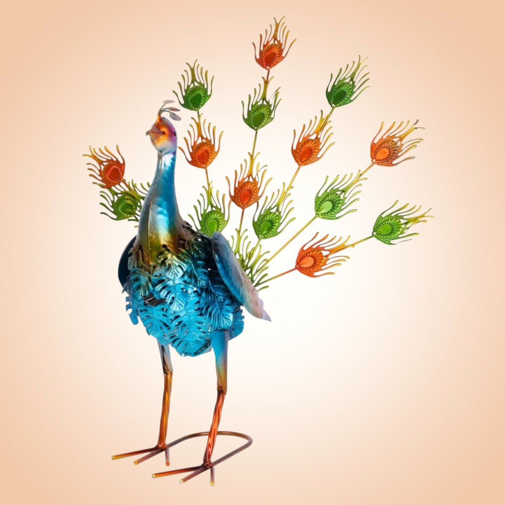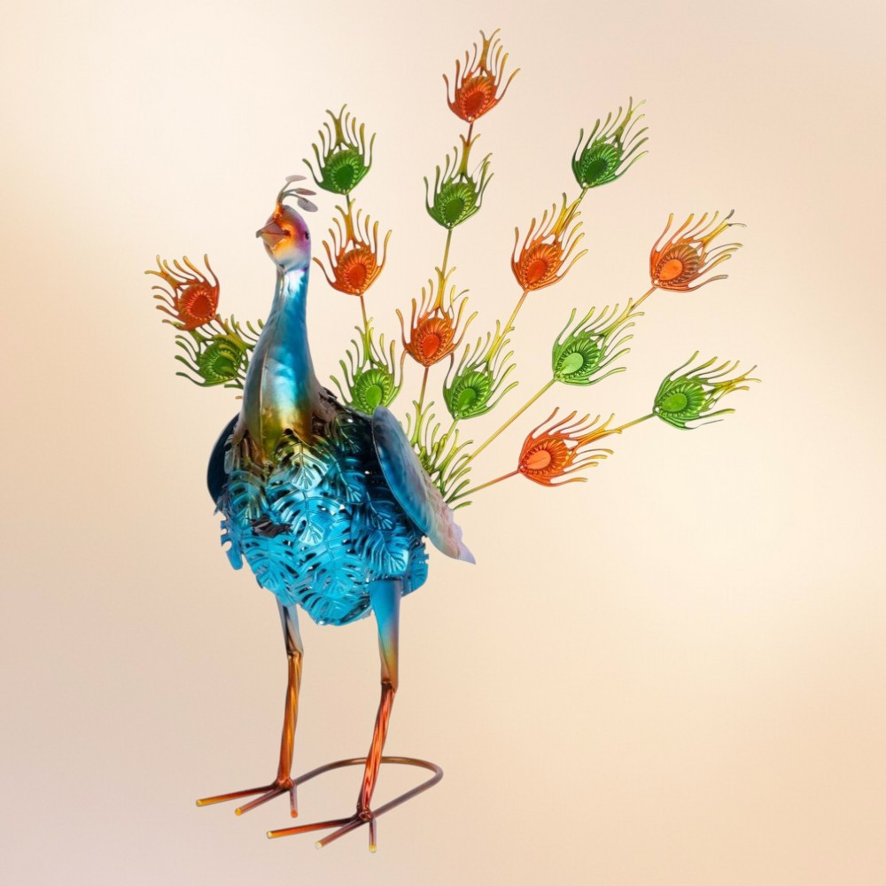 Dobd fel kerted hangulatát a MagicHome Mecco pávával! Ez a 49 x 35,5 x 53 cm-es fém dekoráció igazi színkavalkáddal kápráztat el: a kékes testhez zöld és narancs tónusú tollak társulnak, így már messziről magára vonja a tekintetet. Stabil, hajlított talpa biztos tartást ad a füvön, kavicságyon vagy teraszon egyaránt, a részletgazdag, lézervágott tollminták pedig napfényben csillogva még látványosabbá teszik a madarat.
