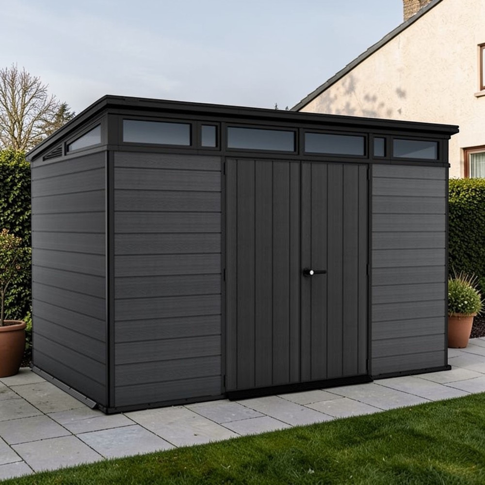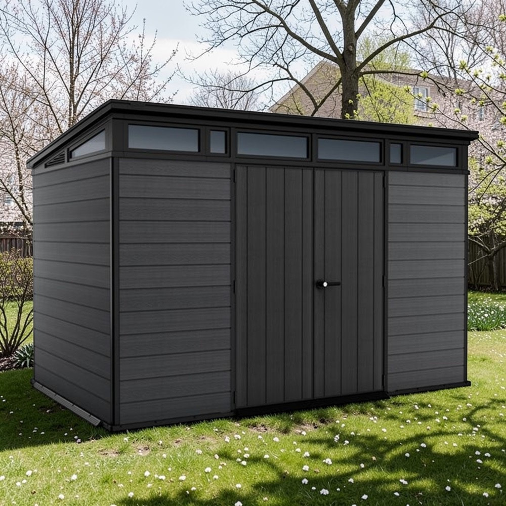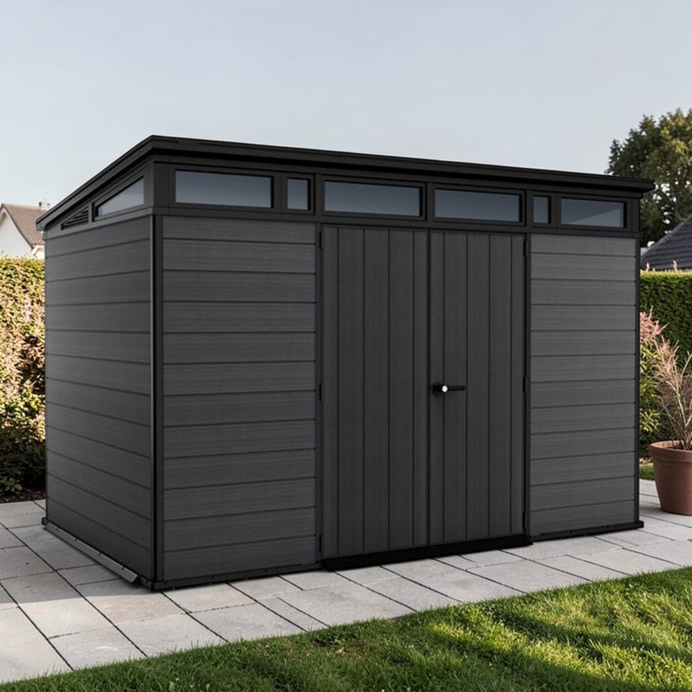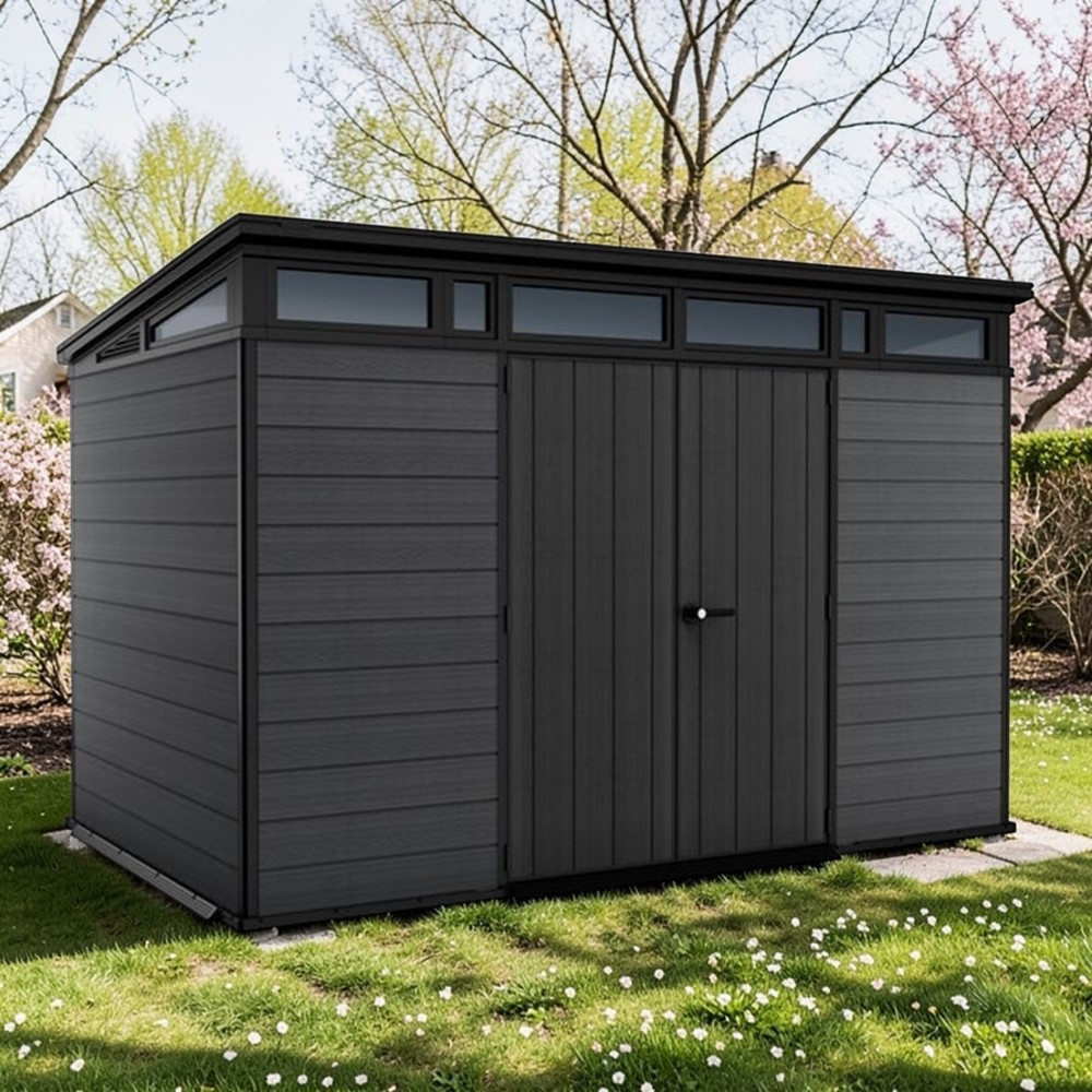 Mert egyszerre hoz rendet és stílust a kertedbe. A széles nyílású dupla ajtón át gond nélkül gördítheted be a talicskát vagy a fűnyírót, a beépített ablakokon át beszűrődő napfény pedig segít eligazodni odabent. Időjárásálló szerkezete megóvja a tárolt eszközöket az esőtől, a hótól és a tűző naptól, így egész évben biztonságban tudhatod értékeidet. Modern, letisztult megjelenése dísze lesz udvarodnak, miközben tartós és megbízható tárolóhelyet biztosít.