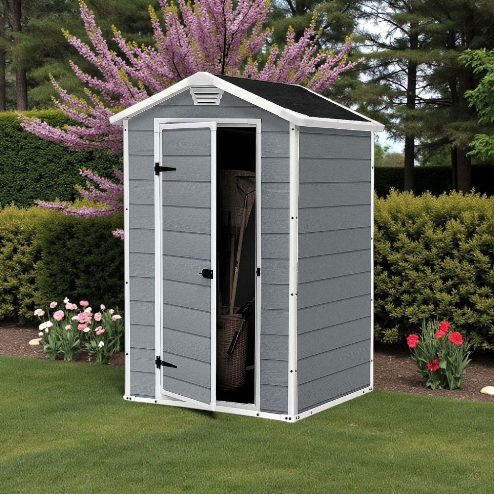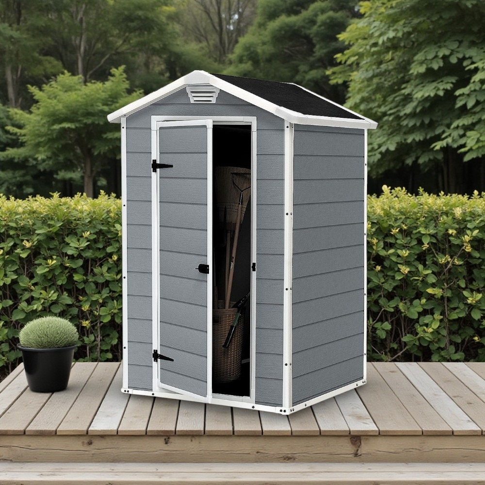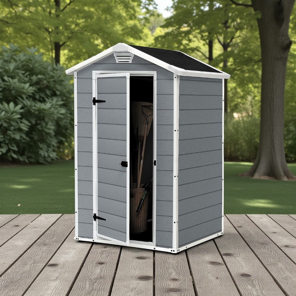 Adj rendezett, stílusos megjelenést kertednek a Keter MANOR 4x3 házikóval! A 128×94 cm-es alapterület ideális a fűnyíró, kerti szerszámok és egyéb kiegészítők számára, miközben a 196 cm-es belmagasság kényelmes mozgásteret nyújt. A szürke oldalfalak és fehér keretek modern, letisztult külsőt adnak, az UV-álló, víz- és hóálló műanyag pedig hosszú éveken át ellenáll az időjárásnak. A fémbetétes váz stabilitást, a lakatolható ajtó biztonságot garantál.