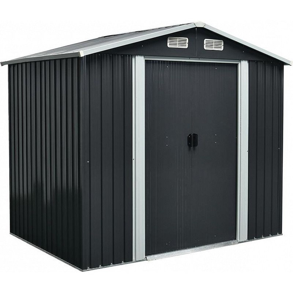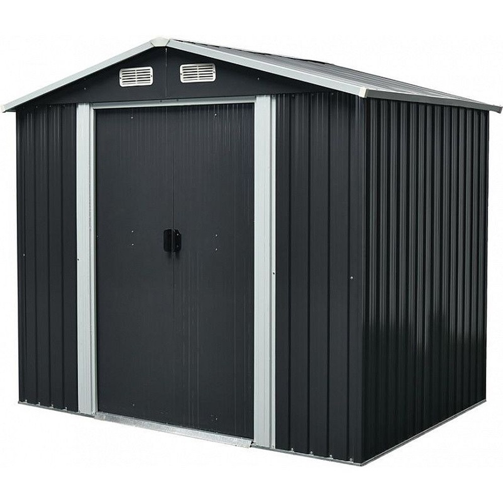Hozz létre rendezett, gondozott kertet a Strend Pro fémlemez kerti házikóval! A 236 × 174 × 206 cm-es, antracit színű tárolóház tágas belseje elegendő helyet kínál fűnyíró, kerékpár, grillsütő vagy kerti bútor számára. A 0,3 mm vastag, festett acéllemezek és a 0,6 mm-es horganyzott keret 20%-kal masszívabb szerkezetet ad, így ellenáll az esőnek, hónak és UV-sugárzásnak. A dupla tolóajtó megkönnyíti a be- és kipakolást, míg a négy szellőzőnyílás folyamatos légcserét garantál, megóvva a tárolt eszközöket a párától és a penésztől.