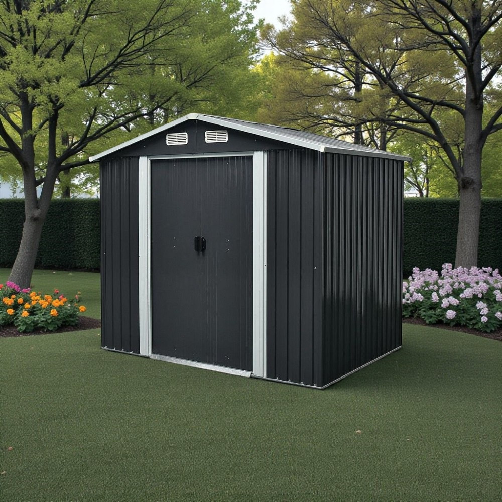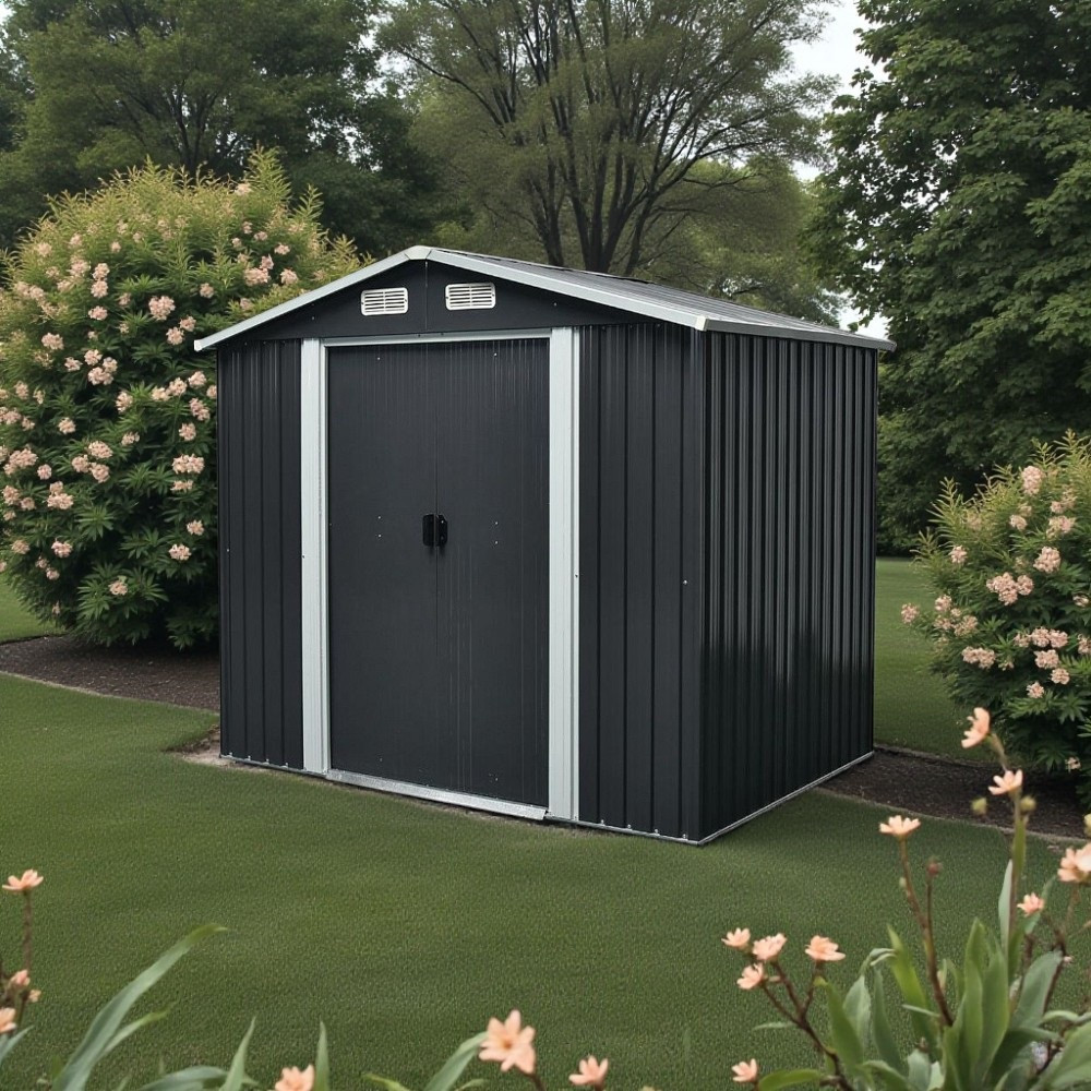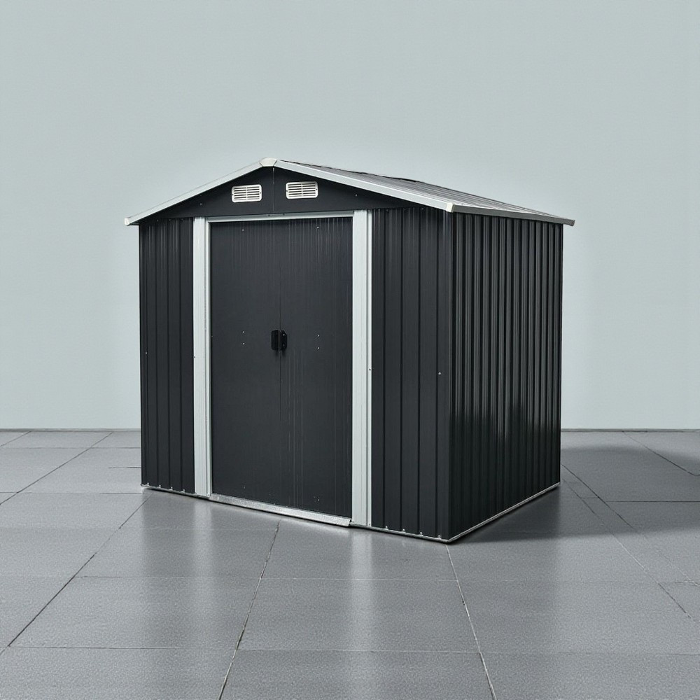 Az extra vastag acéllemezek és a galvanizált merevítés hosszú távú védelmet nyújt, így nem kell aggódnod a rozsda vagy a sérülések miatt. A 105 × 170 cm-es dupla tolóajtó nagy nyílást biztosít, így könnyedén befér még a szélesebb kerti gép is. Az antracit szín modern megjelenést kölcsönöz, bármilyen kertben elegáns látványt teremt. A négy szellőző biztosítja a megfelelő levegőáramlást, ami csökkenti a párásodást és növeli a tárolt tárgyak élettartamát.